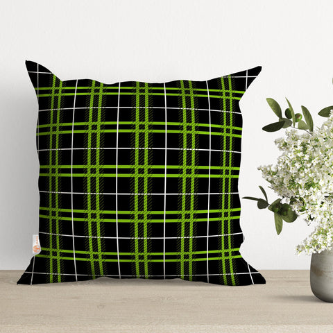 These elegant square decorative farmhouse throw pillow covers with Carved Pumpkin and plaid design;