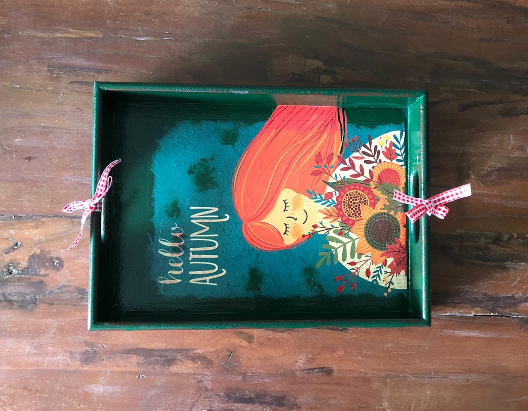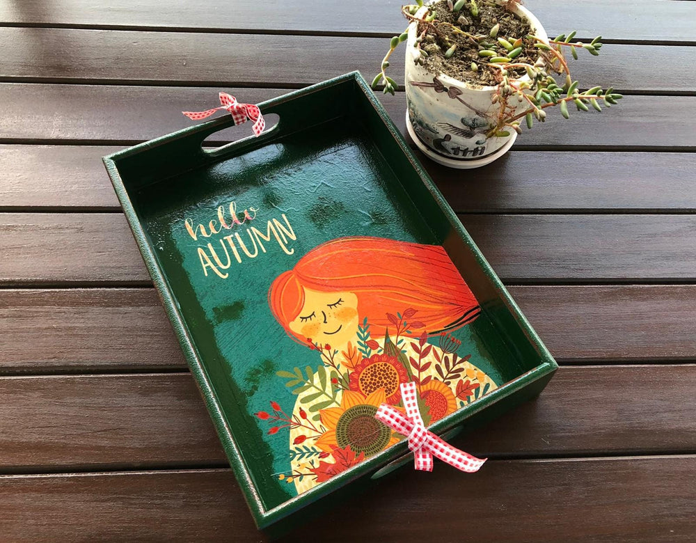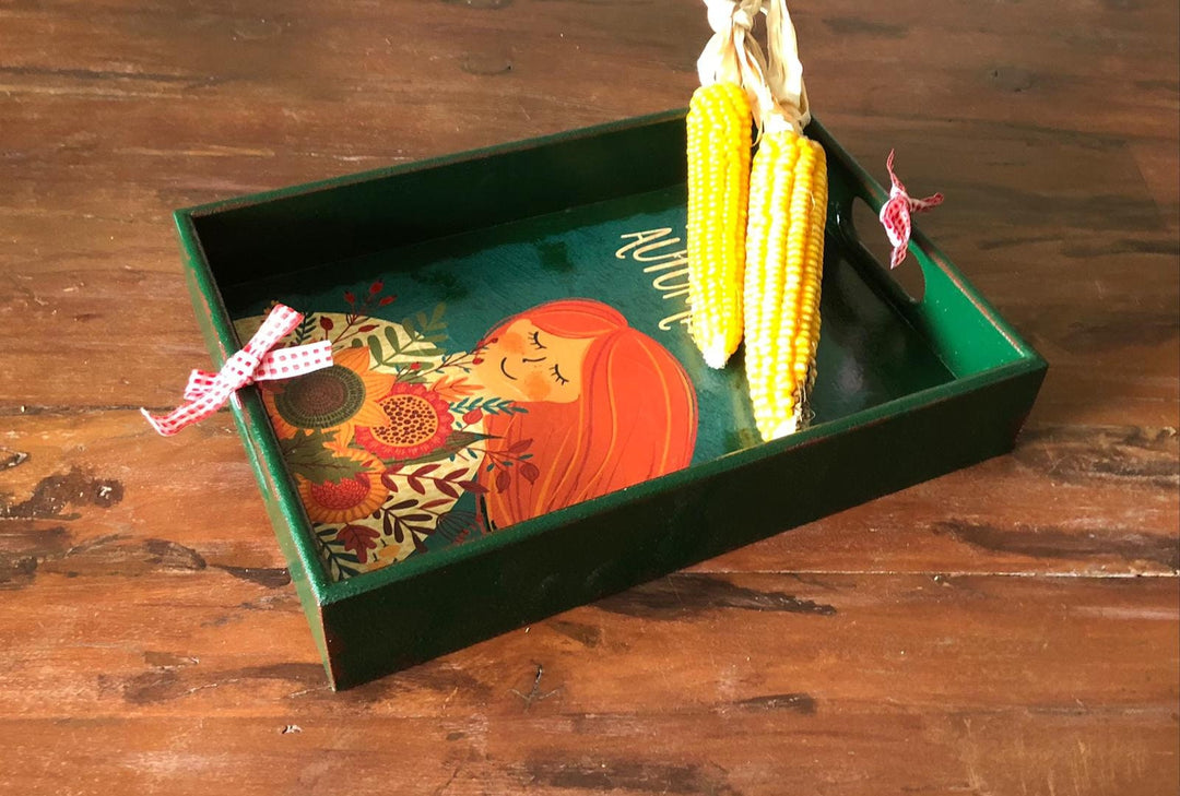 Imagine this charming "Hand Painted Fall Wooden Tray'' on your table to welcome your family and friends.