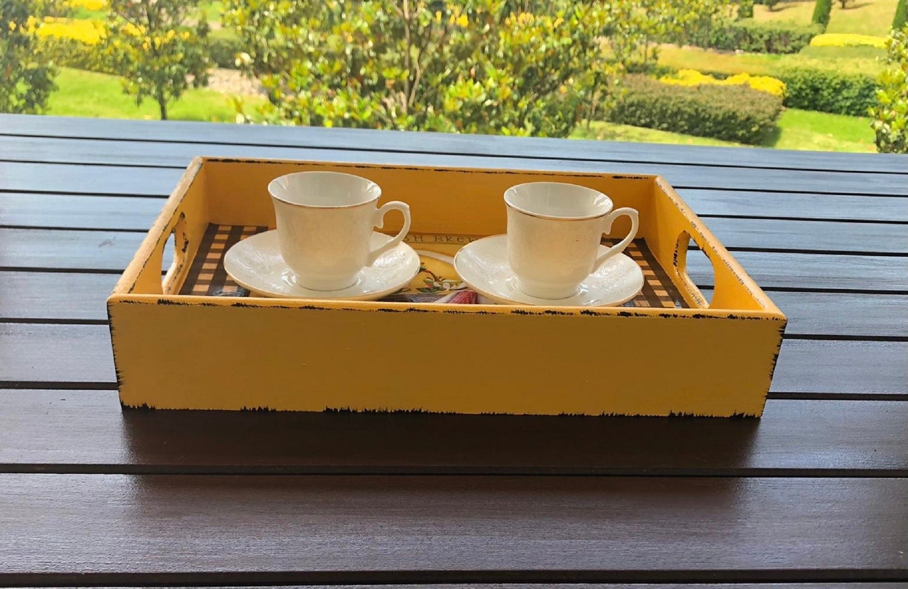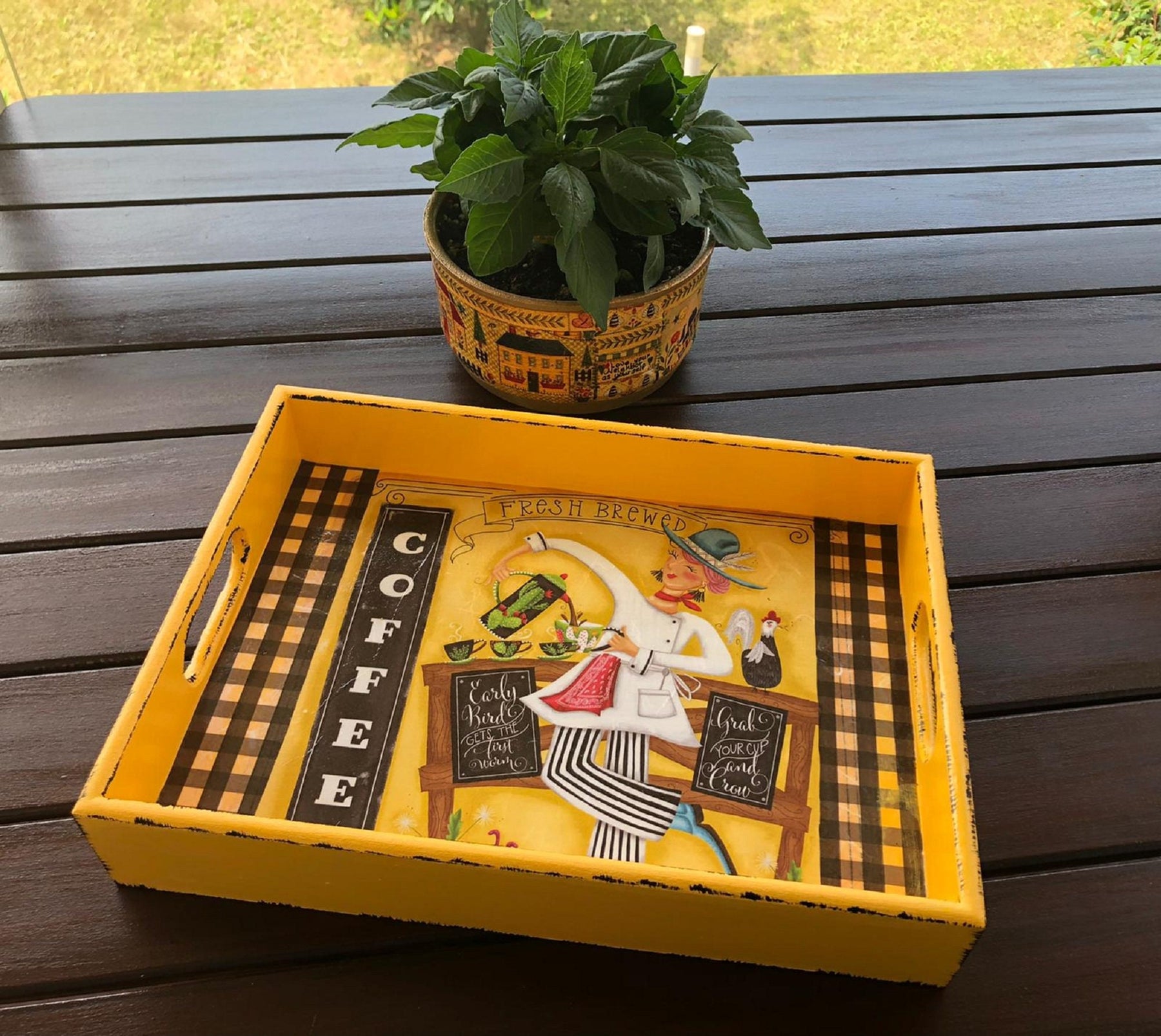 Imagine this charming "Hand Painted Wooden Tray'' on your table to welcome your family and friends.