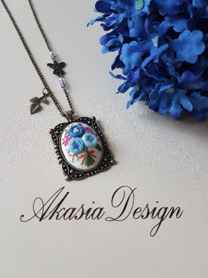 Imagine this pretty "Vintage Blue Floral Embroidery Necklace" on You which is made with love and passion!