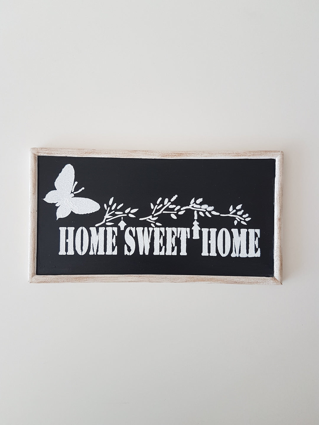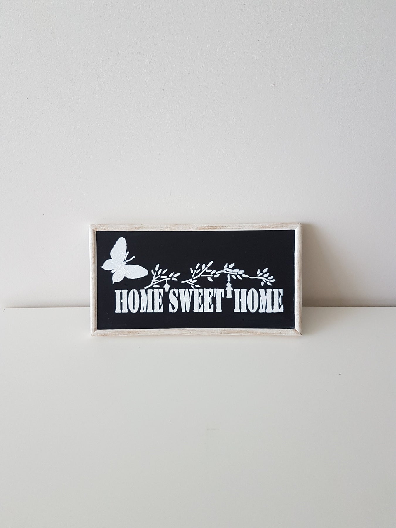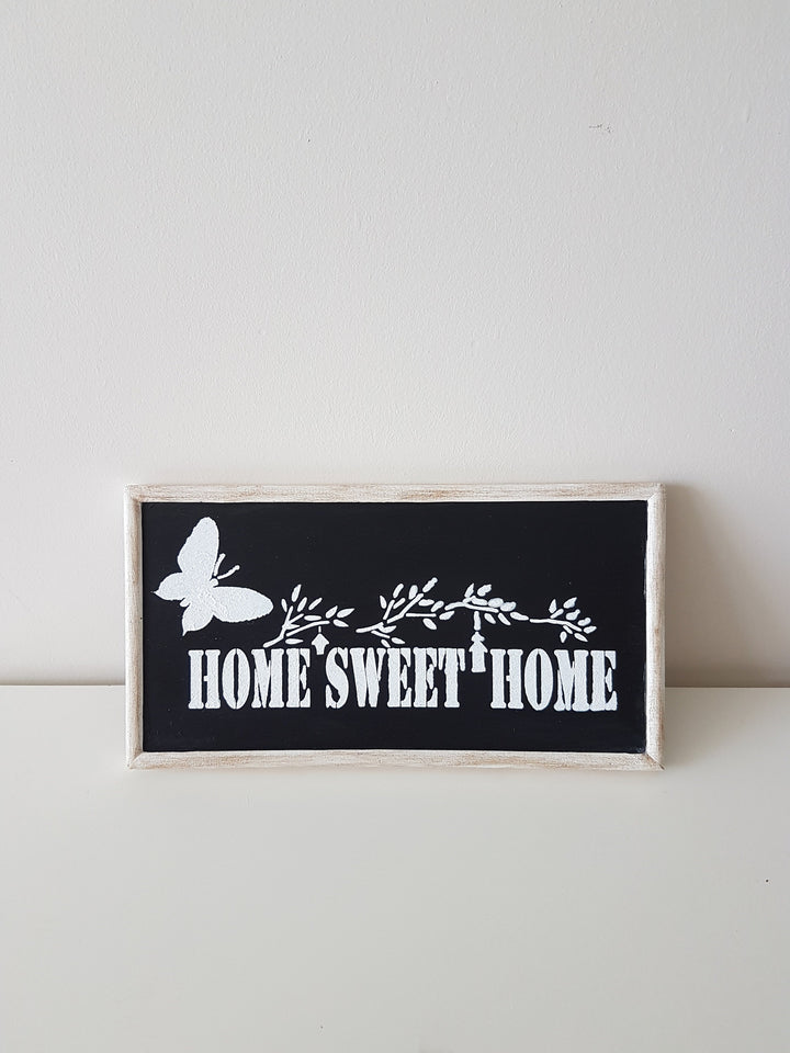 Imagine this black and white "Home Sweet Home" wooden sign on your wall or wardrobe to welcome your family and friends!