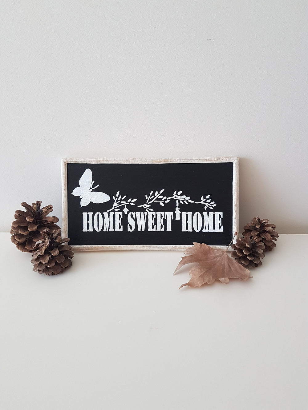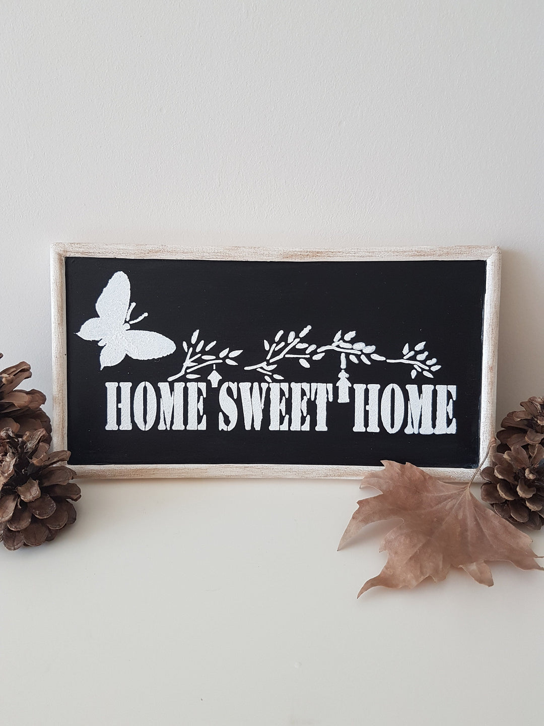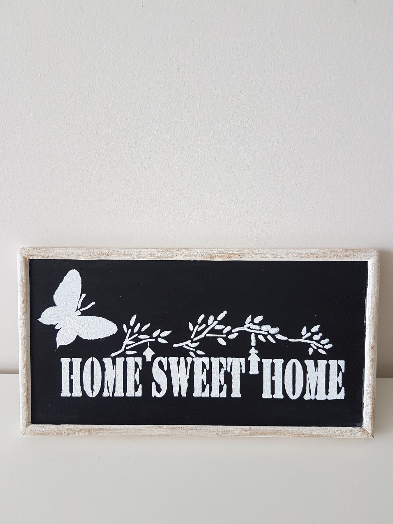Imagine this black and white "Home Sweet Home" wooden sign on your wall or wardrobe to welcome your family and friends!