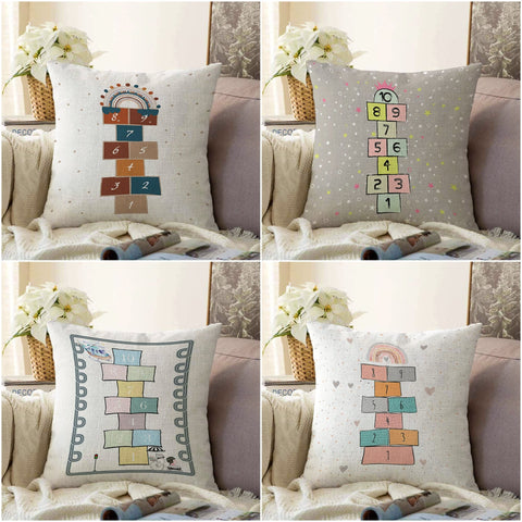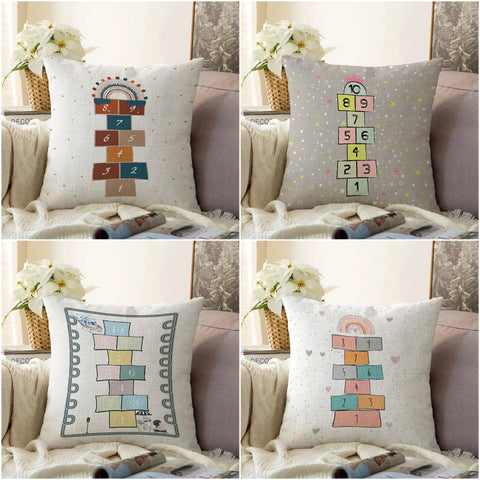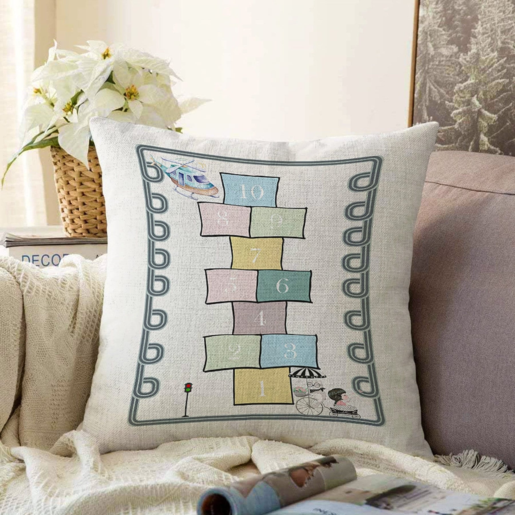 These elegant square decorative kids throw pillow covers with Hopscotch prints;