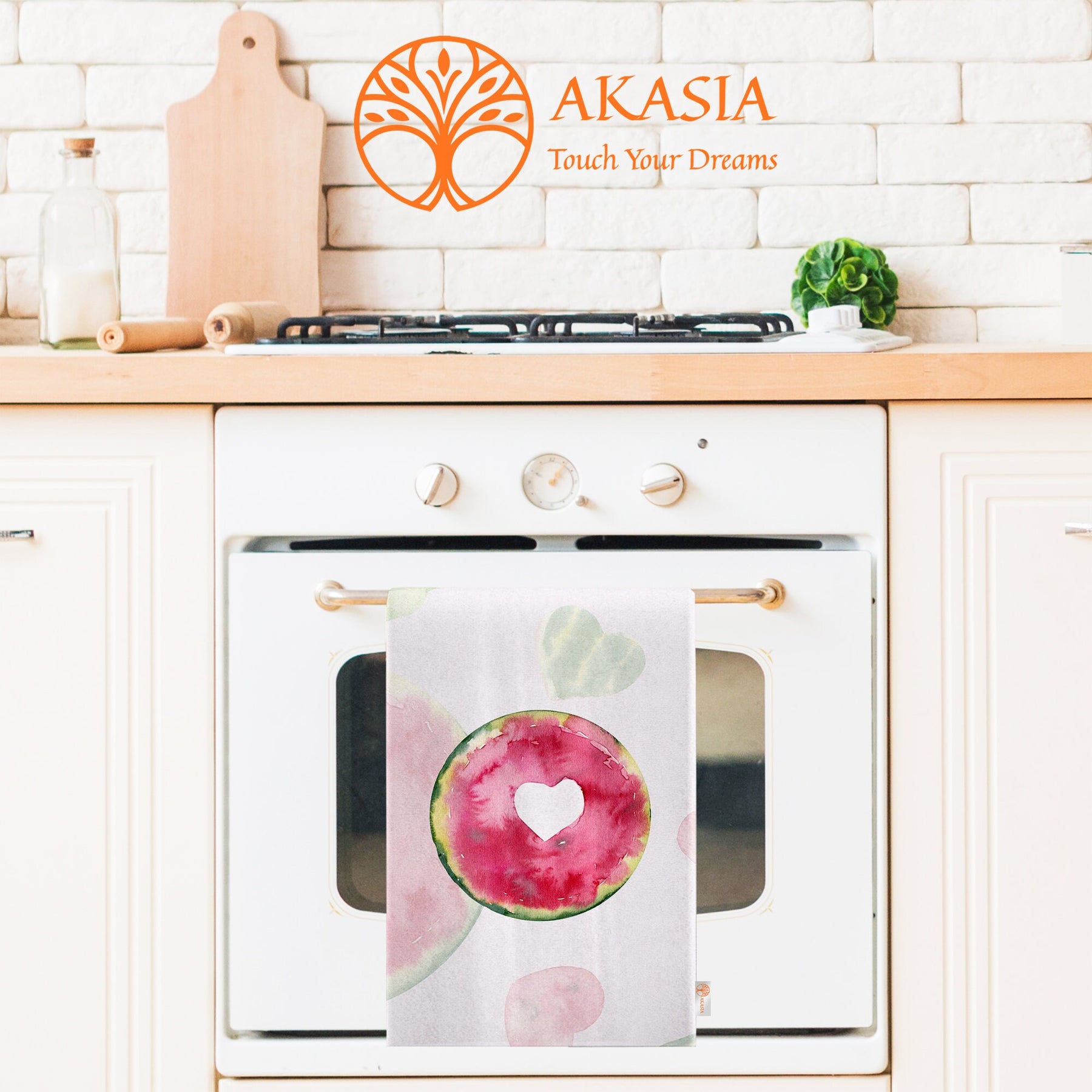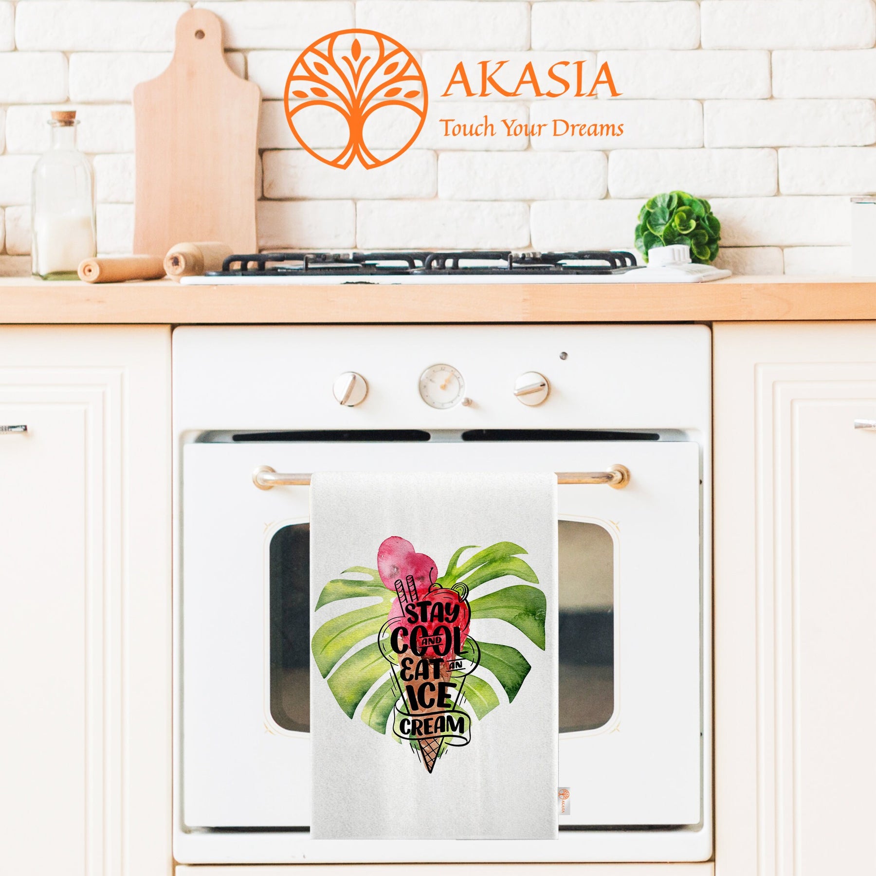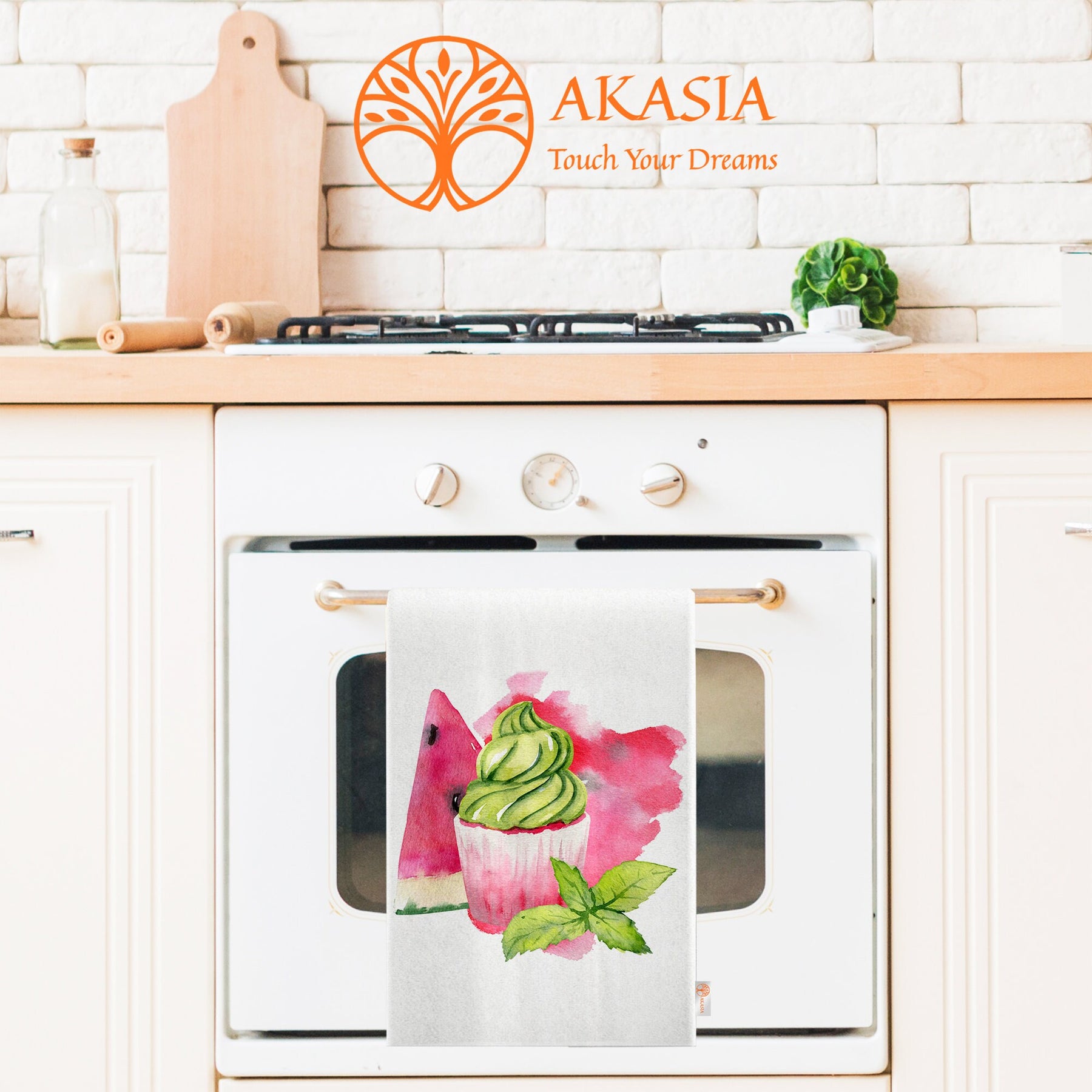 These elegant decorative rectangle kitchen/dish/hand/tea towels with ice cream, watermelon and green tropical leaf print;