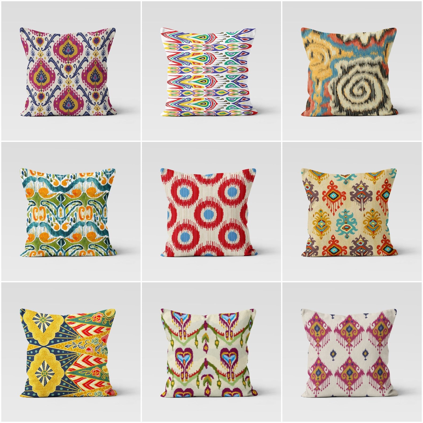 IKAT Design Pillow Cover|Southwestern Style Cushion Case|Decorative and Ethnic Home Decor|Geometric Farmhouse Pillow Case|Modern Pillow Top