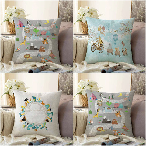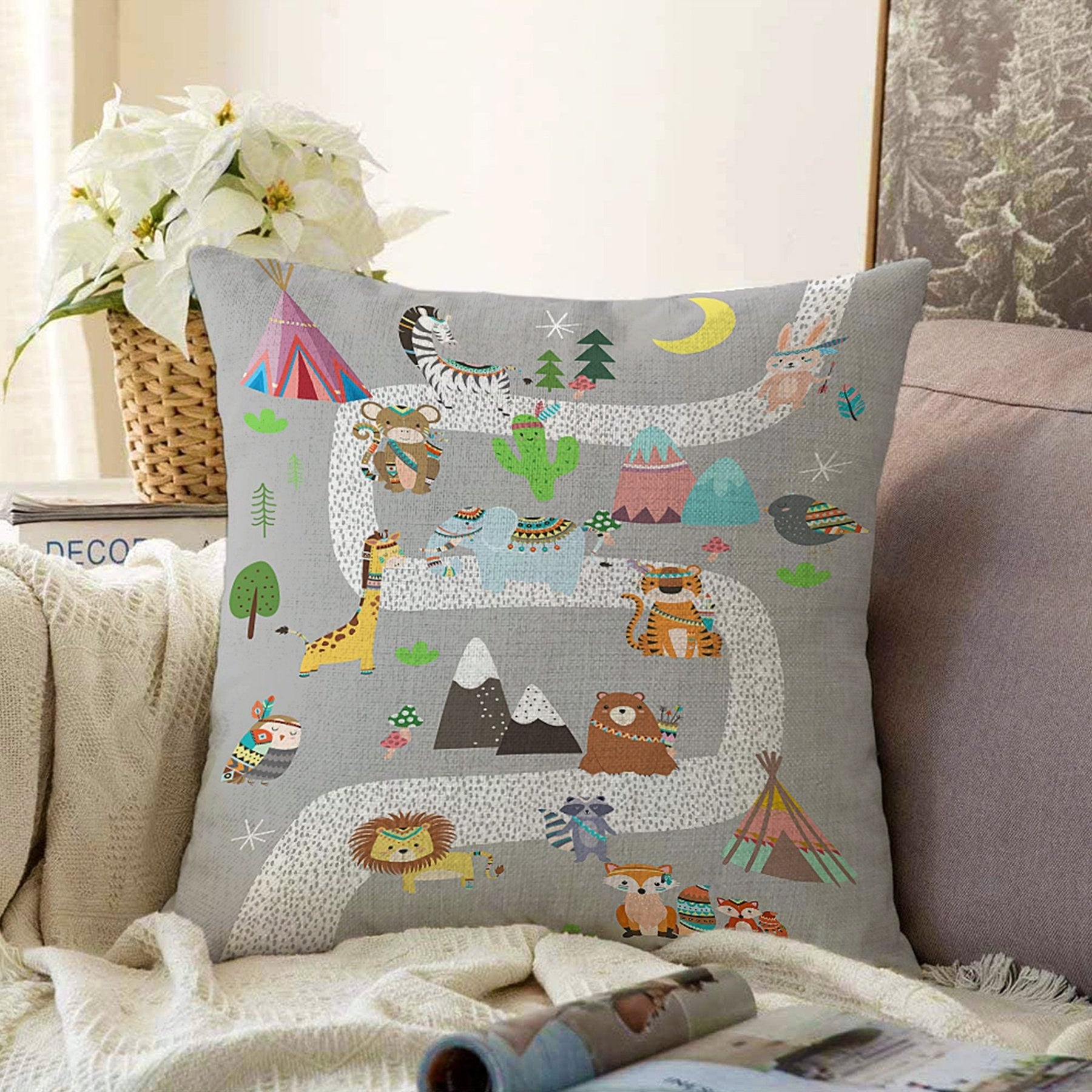 These elegant square decorative kids throw pillow covers with Animals and Educational Game Path prints;