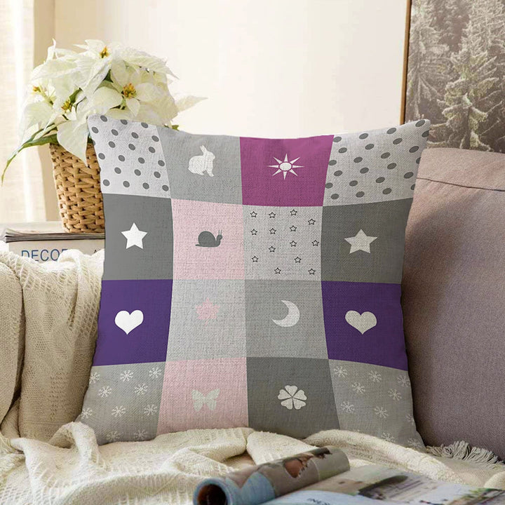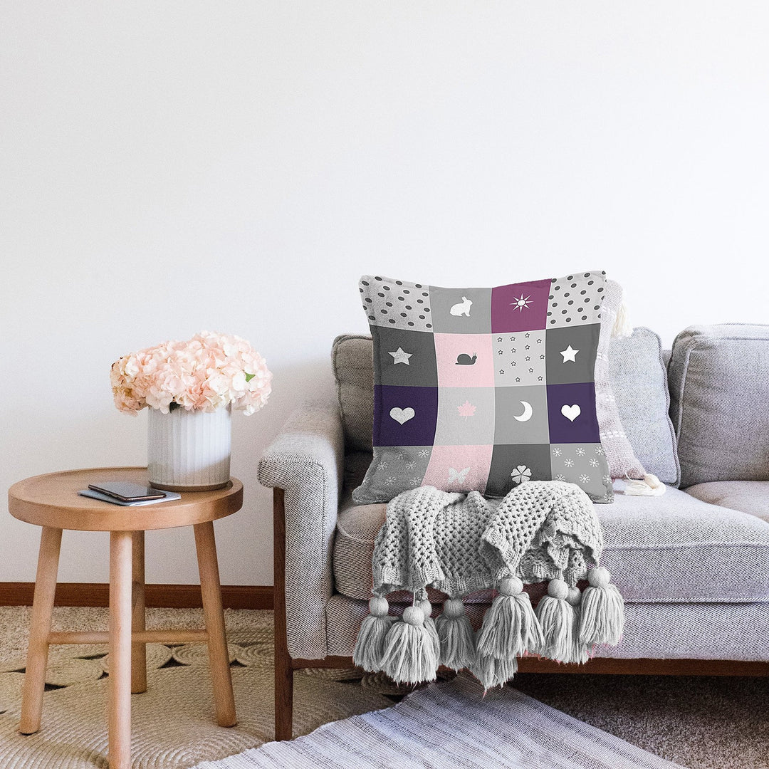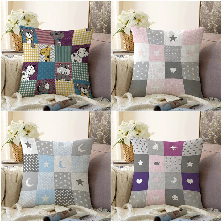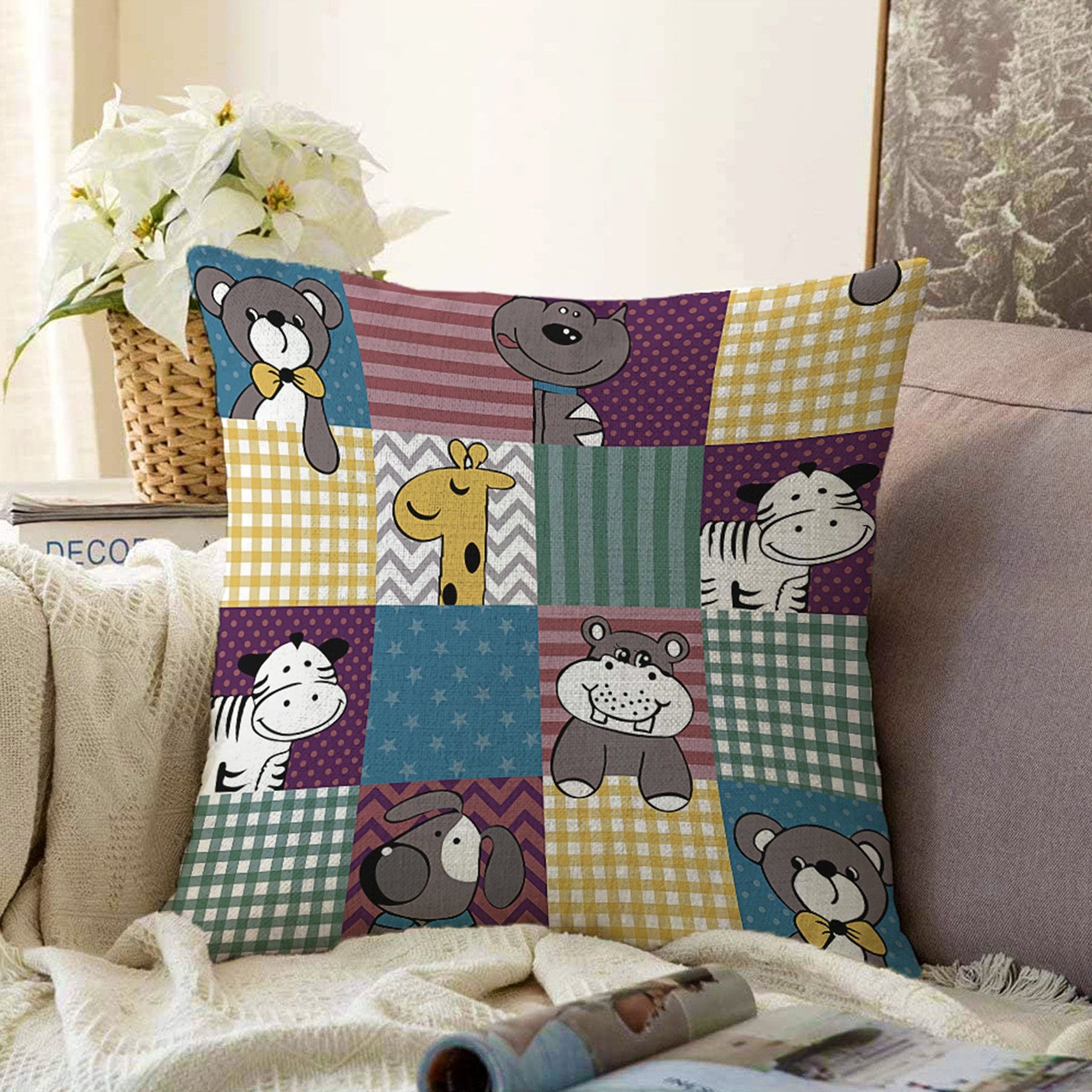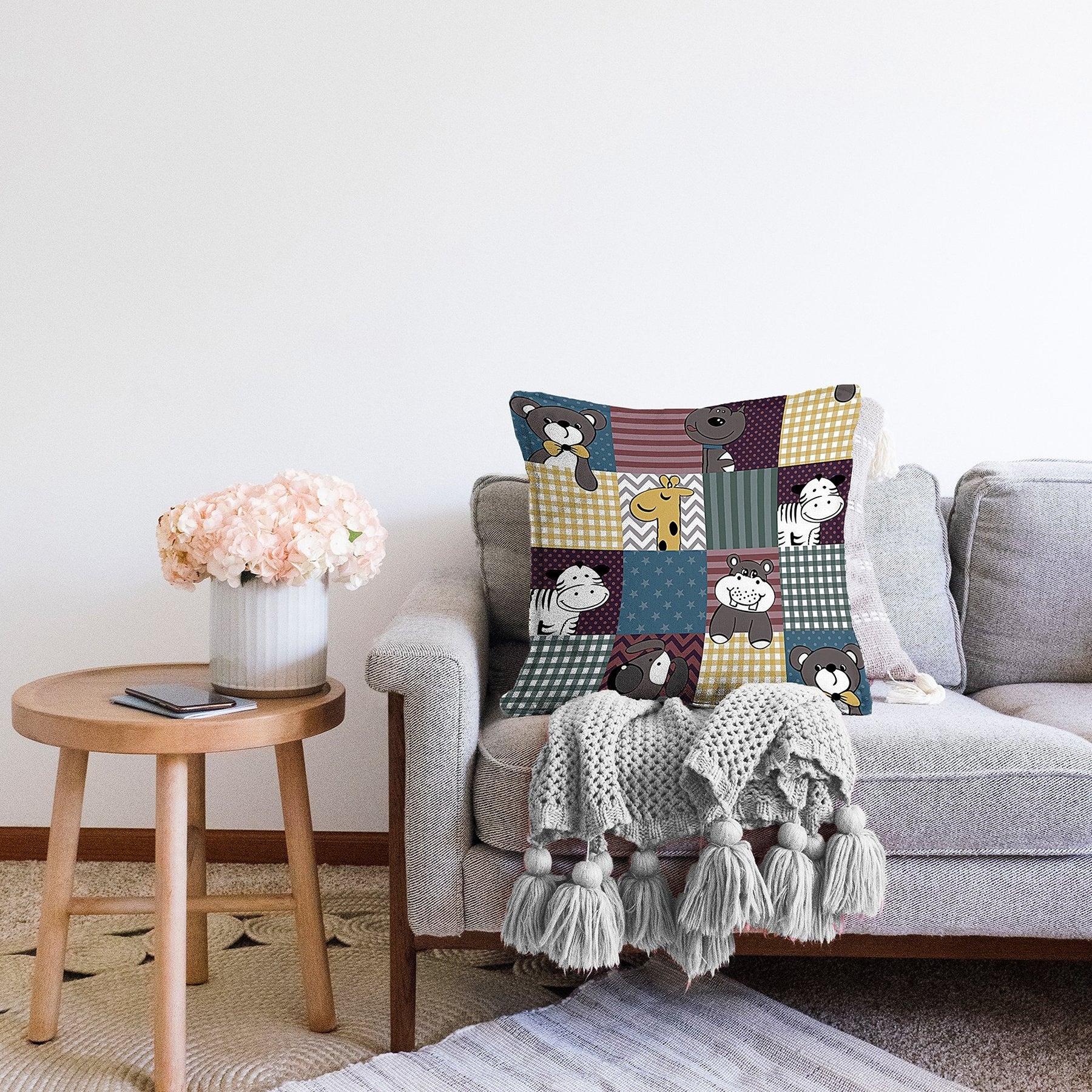 These elegant square decorative kids throw pillow covers with Animal prints on checkered design;