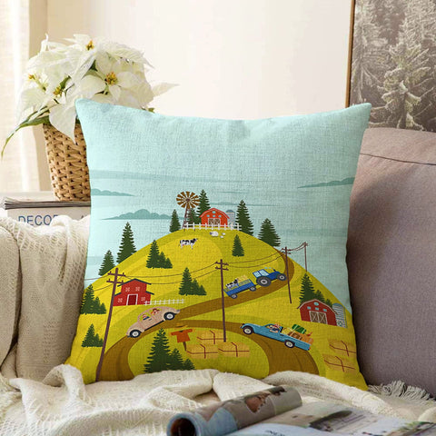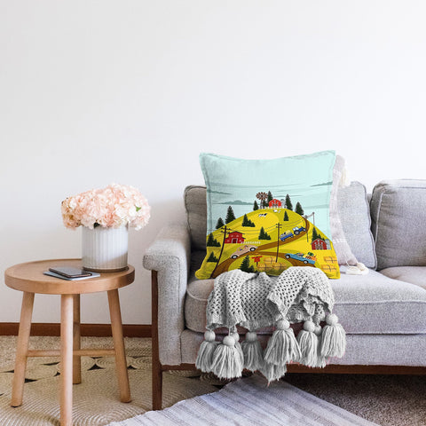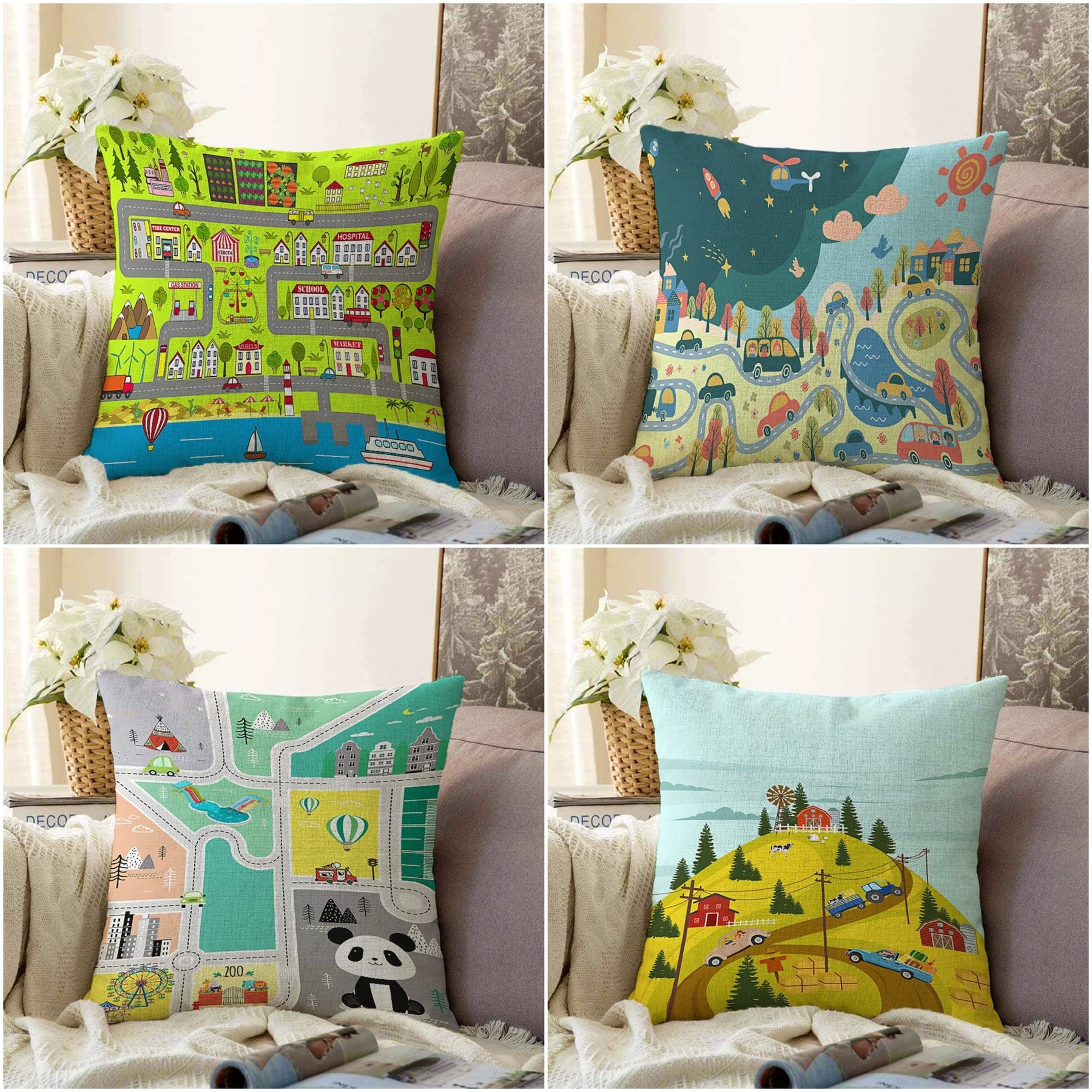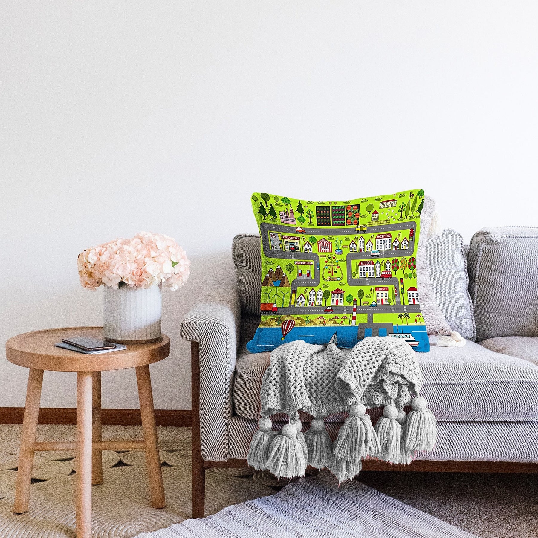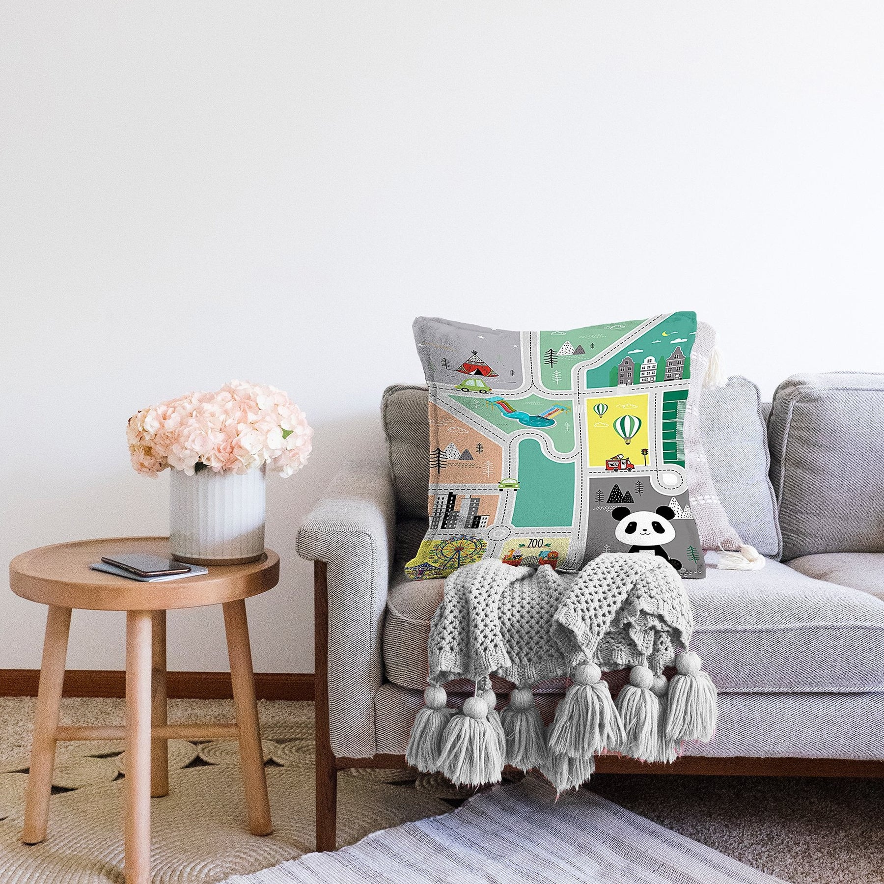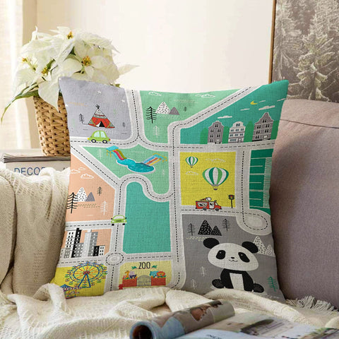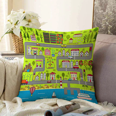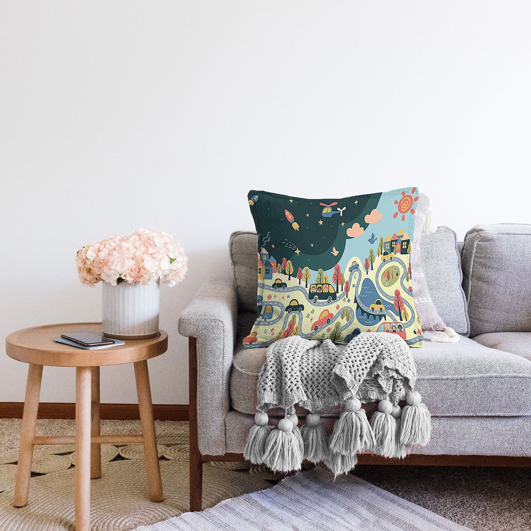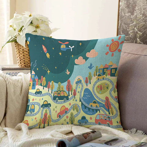 These elegant square decorative kids throw pillow covers with Cars and Houses, Ship, Sea, Roads and Bear prints;