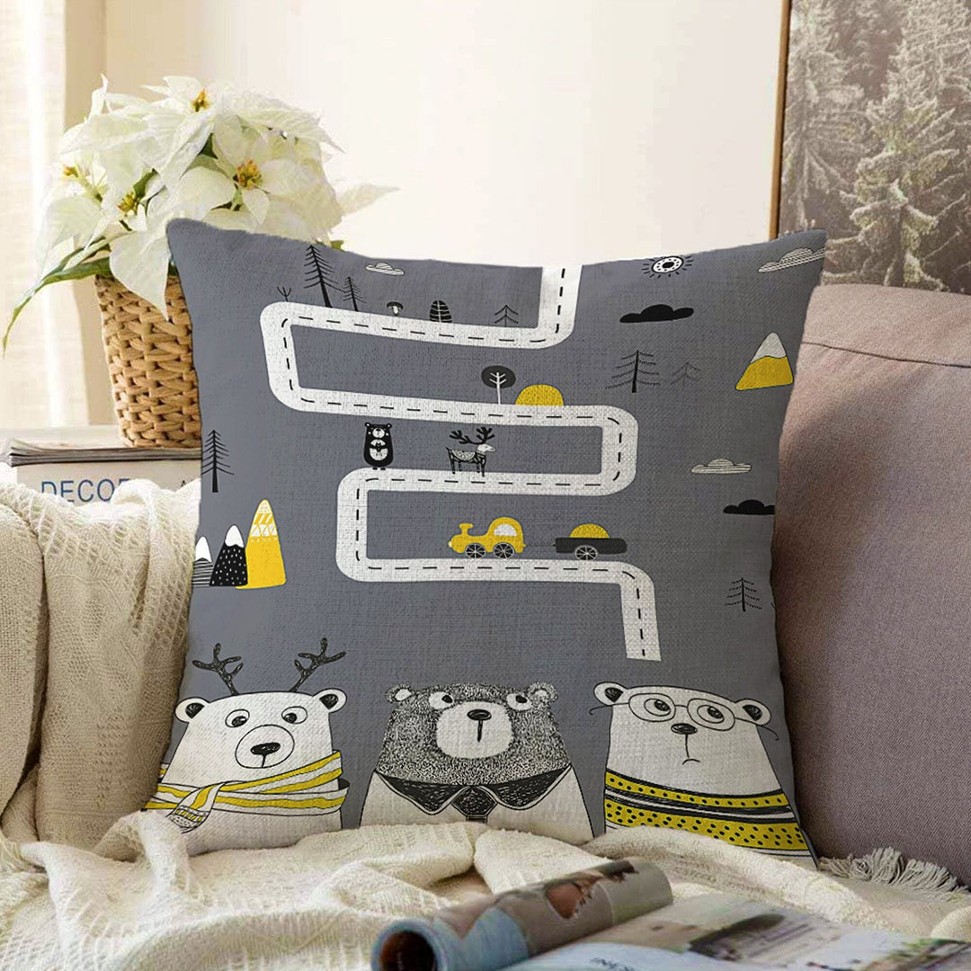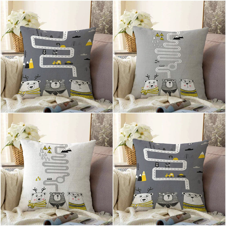 These elegant square decorative kids throw pillow covers with Cute Bears and Educational Game Path prints;