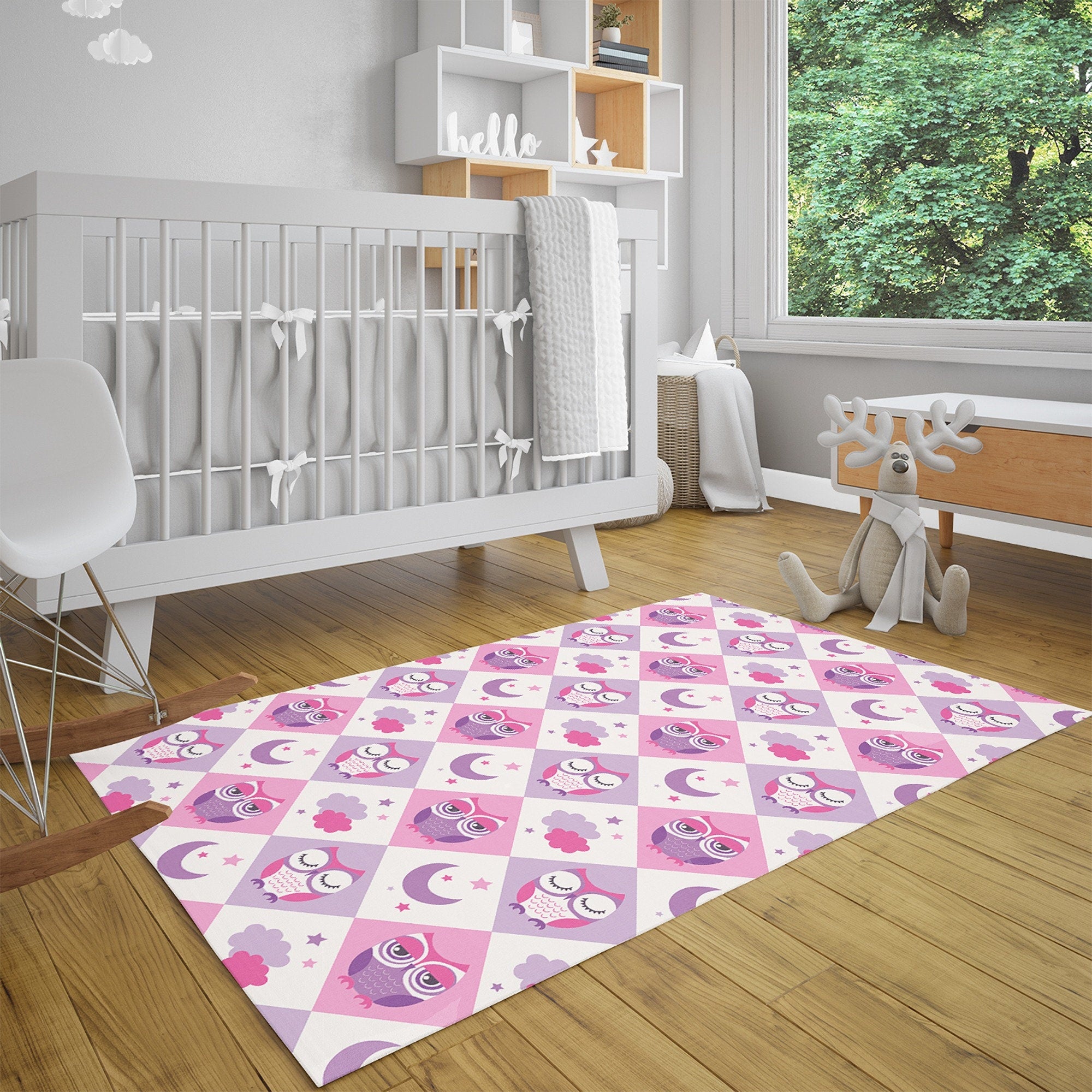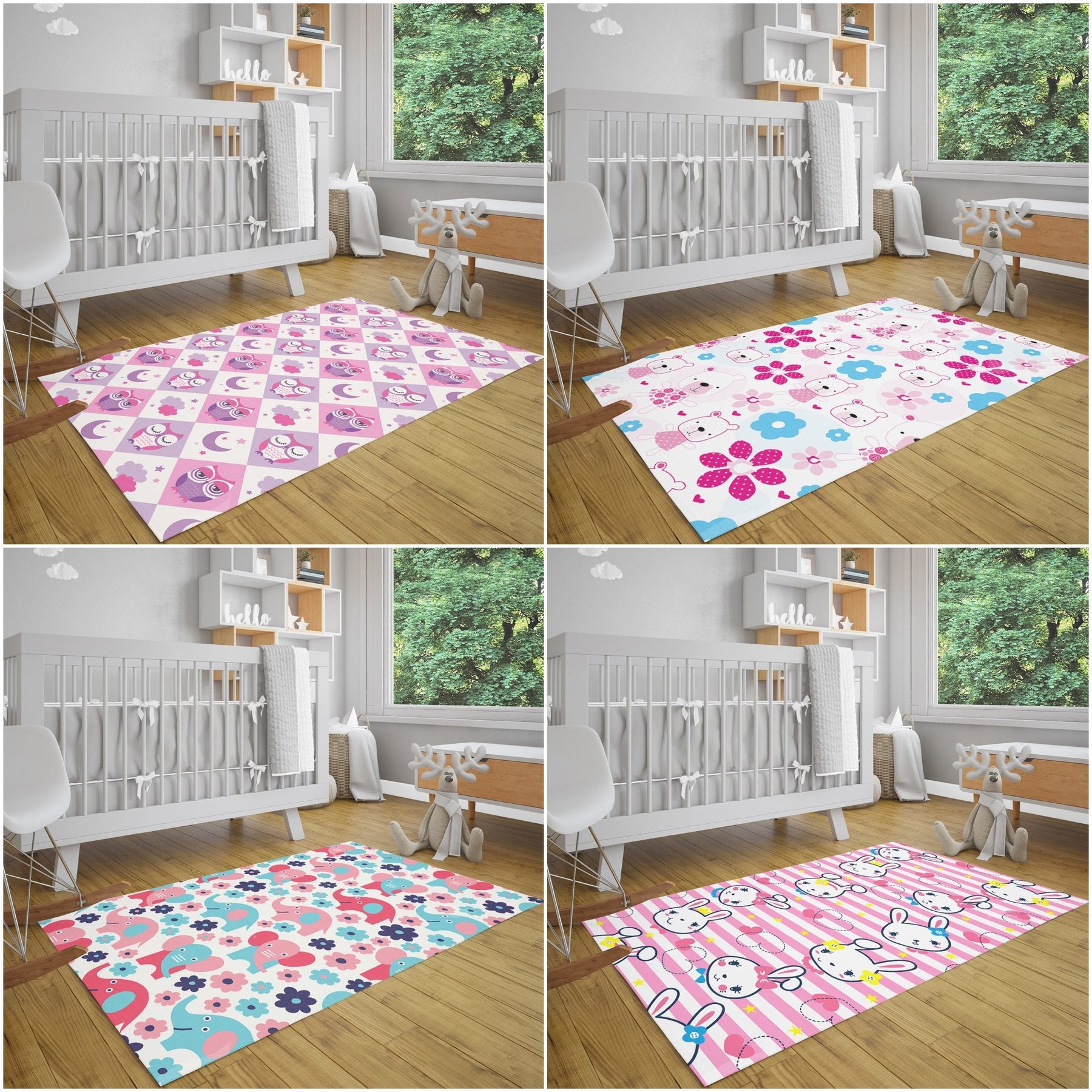 These elegant rectangle floor rugs with Owl, Elephant, Bear and Bunny prints;
