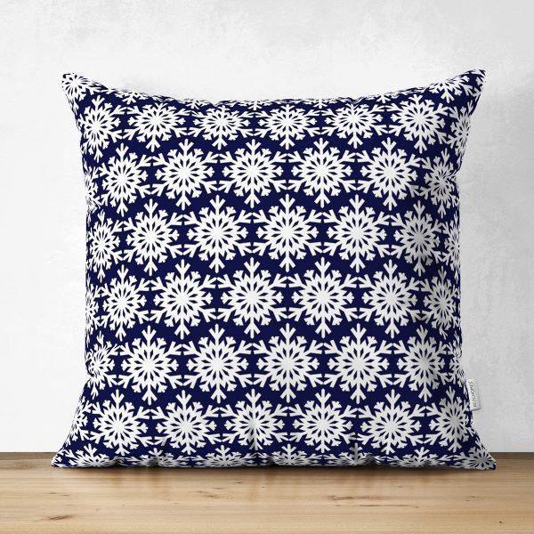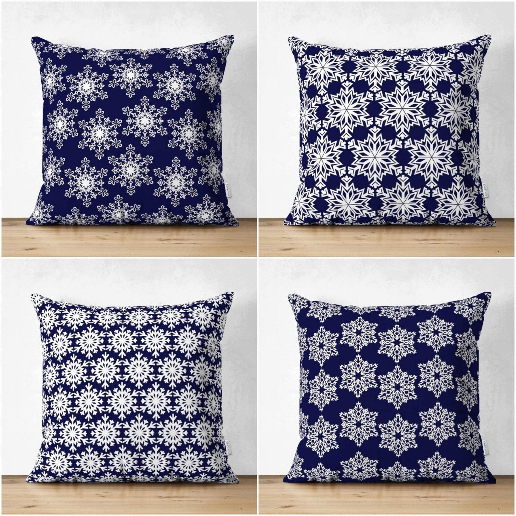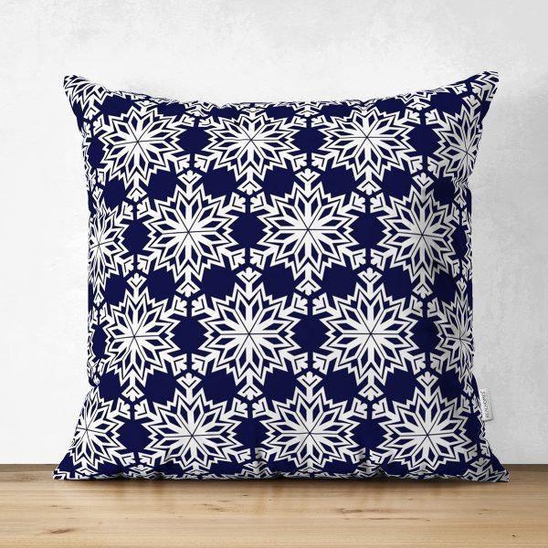 These elegant square decorative suede double-sided geometric dark blue-white pillow covers;