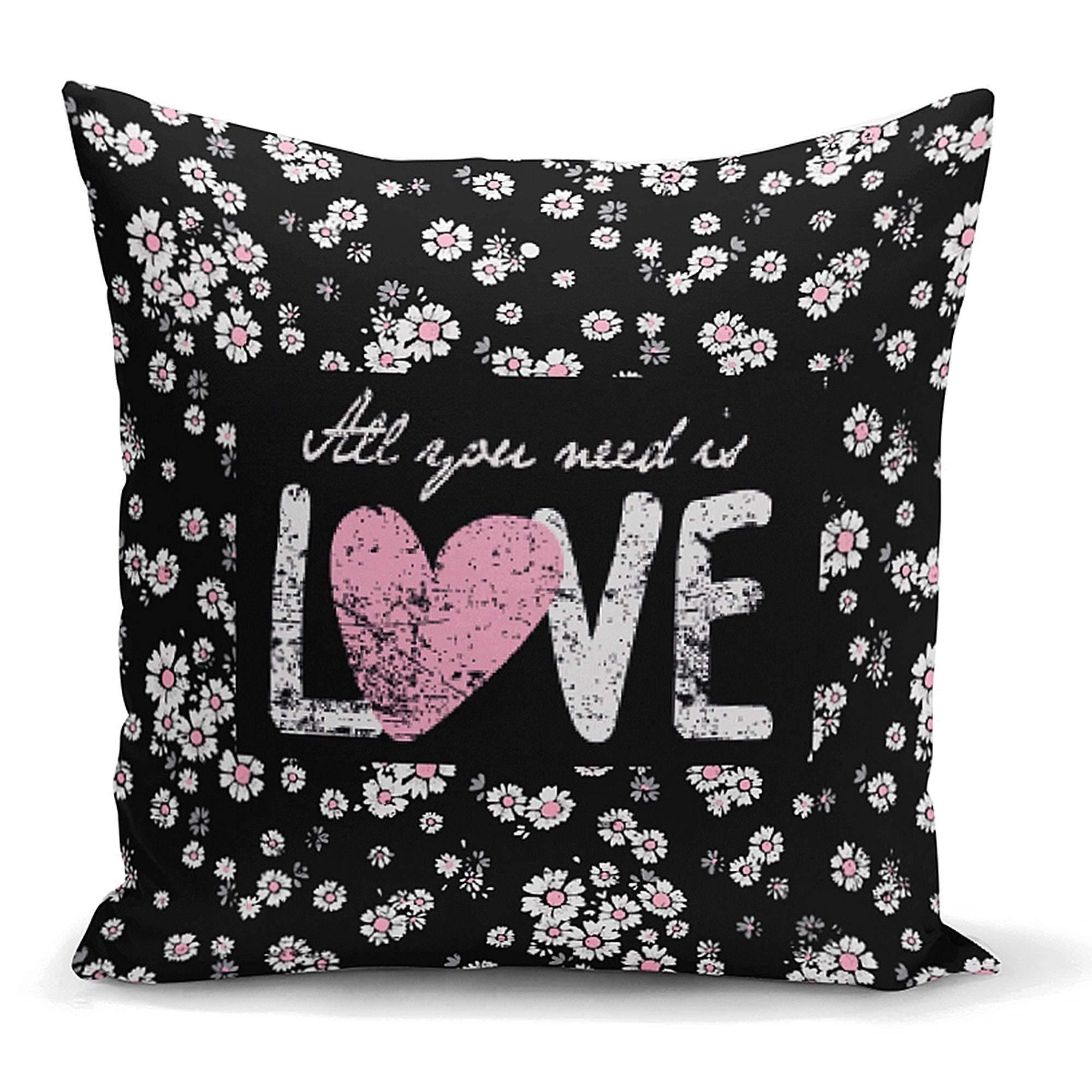 Love Throw Pillow Cover|Valentine's Day Heart Design Pillow|Romantic Floral Love Decor|Happy Valentines Day Cushion|All You Need is Love