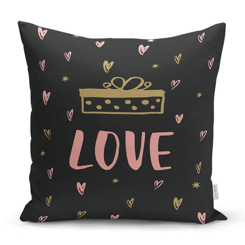 These pink, gold, gray and black heart and love decorated valentine's day accent pillow/cushion covers;