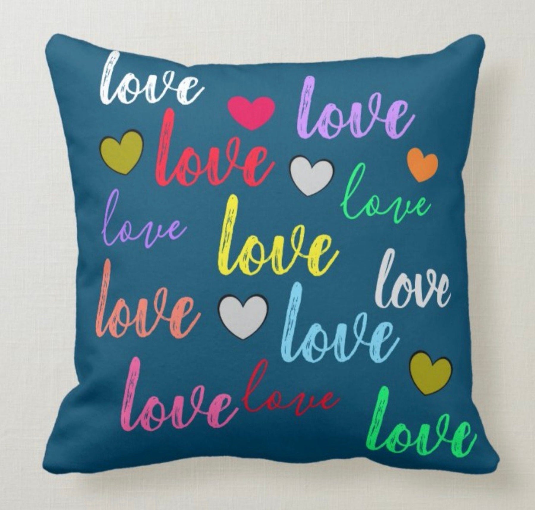 Colorful Heart and Love Printed Valentine Pillow Cover