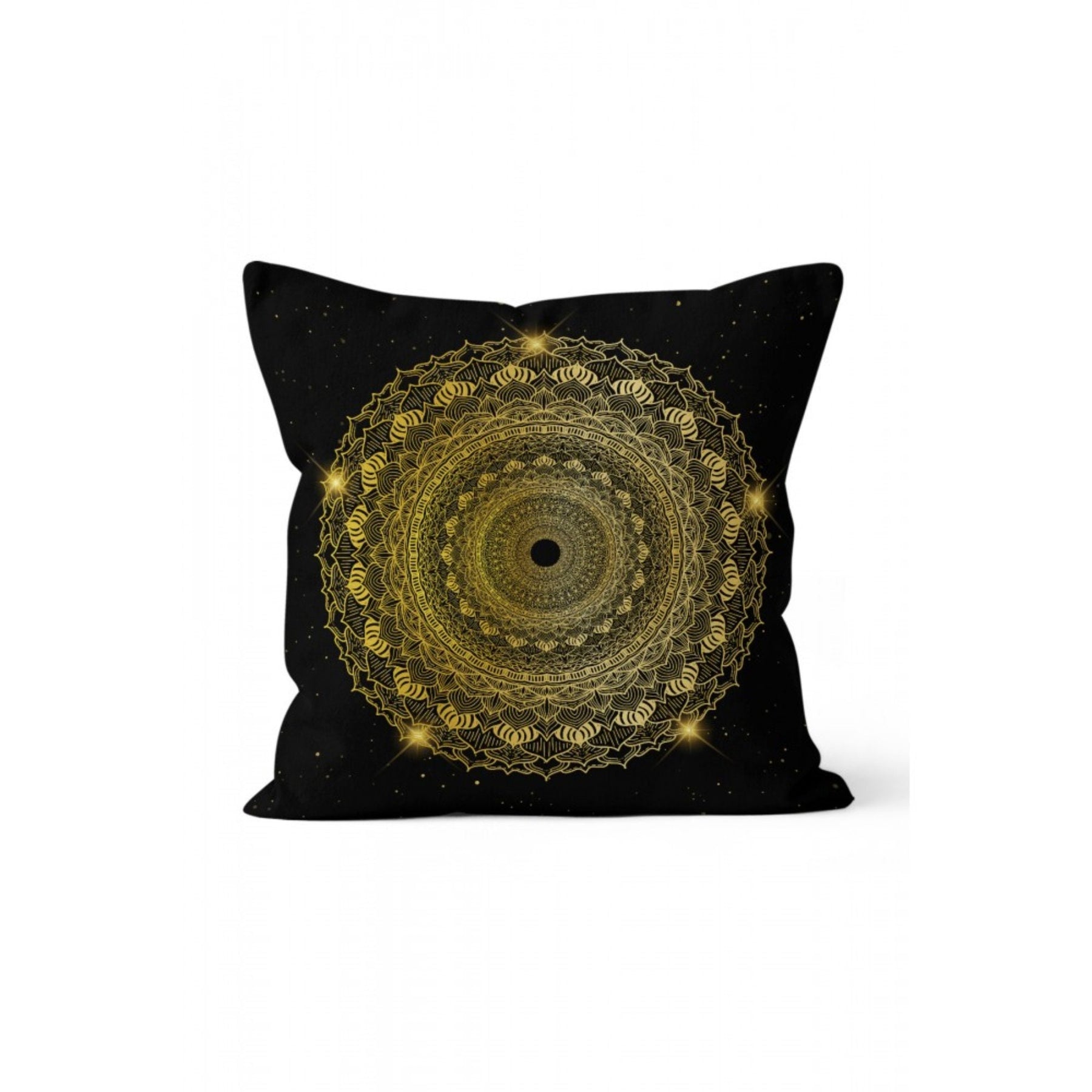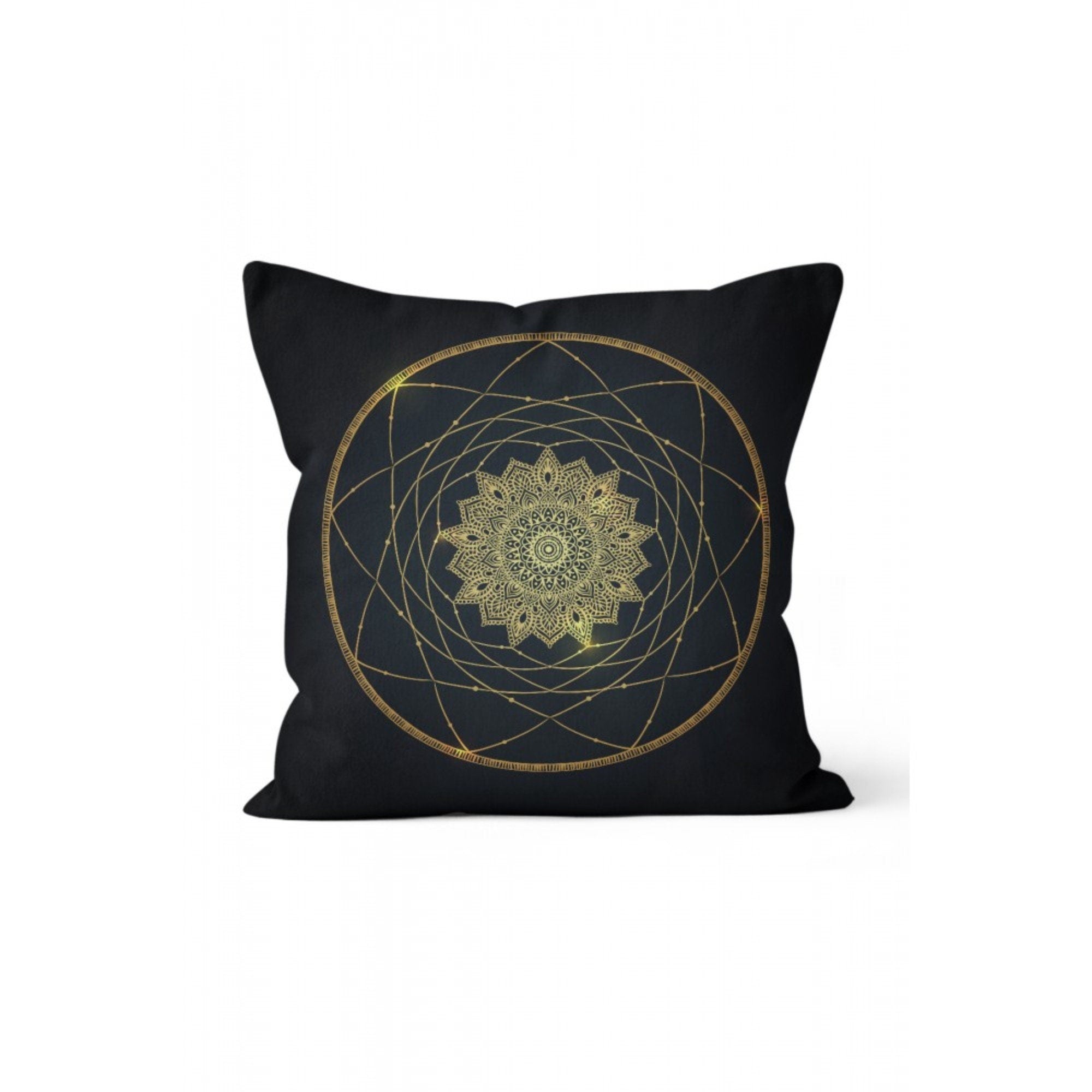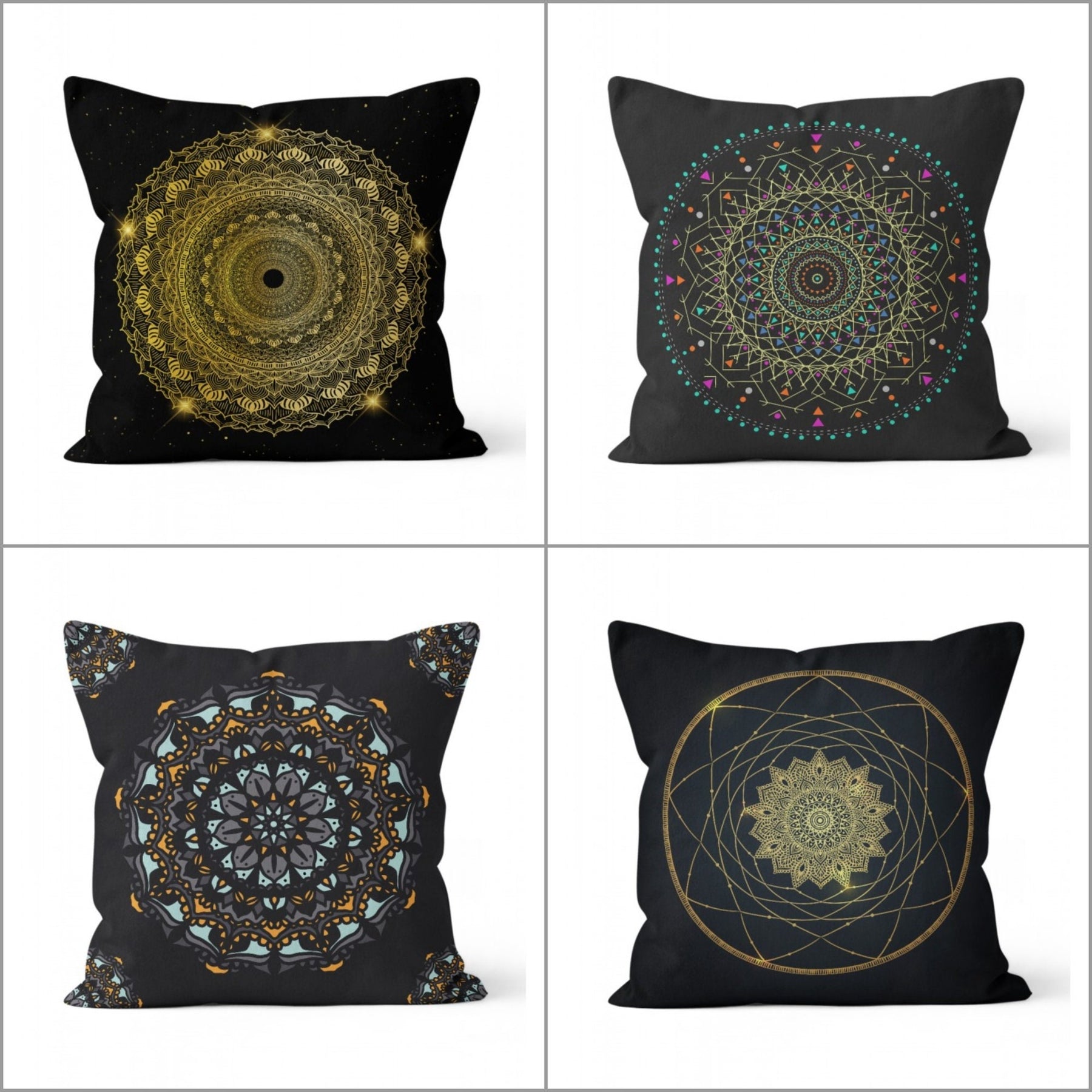 These elegant stylish and high quality throw pillow covers with gold black mandala prints;