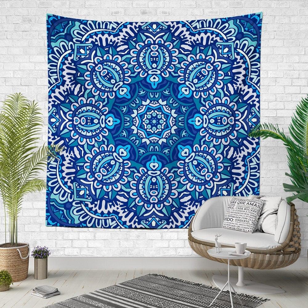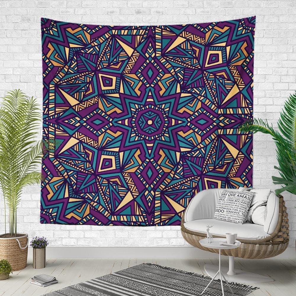 This elegant square fabric wall hanging decor with purple and blue mandala prints reflect your life perspective and;