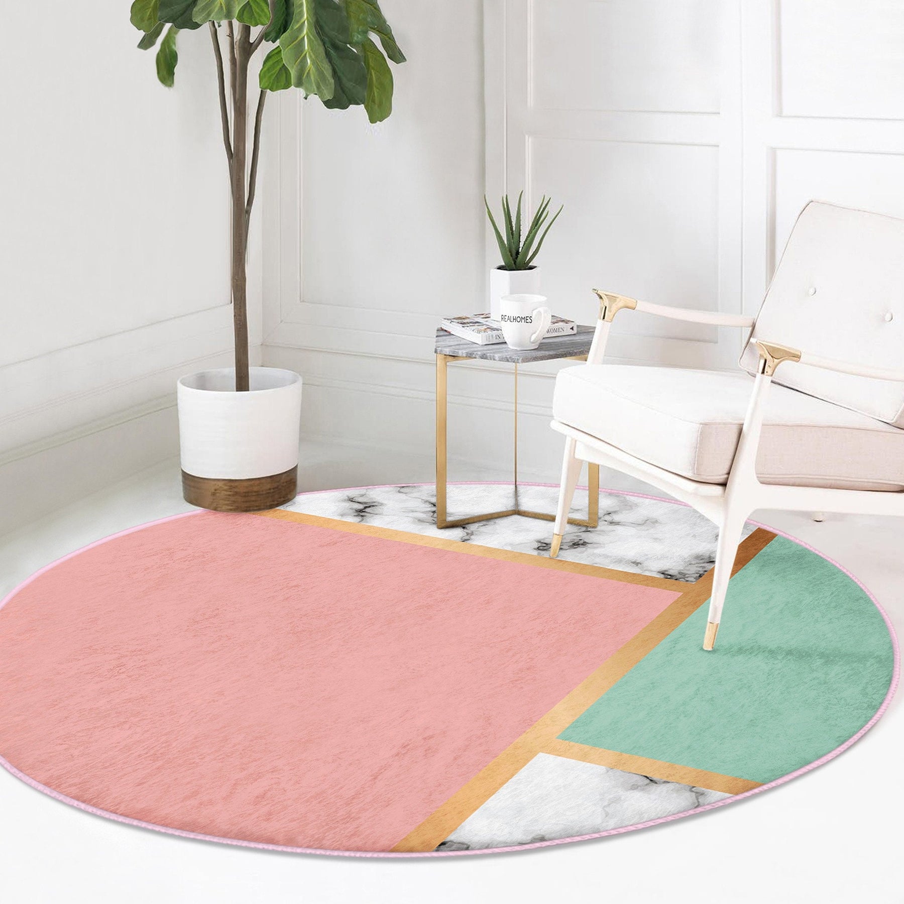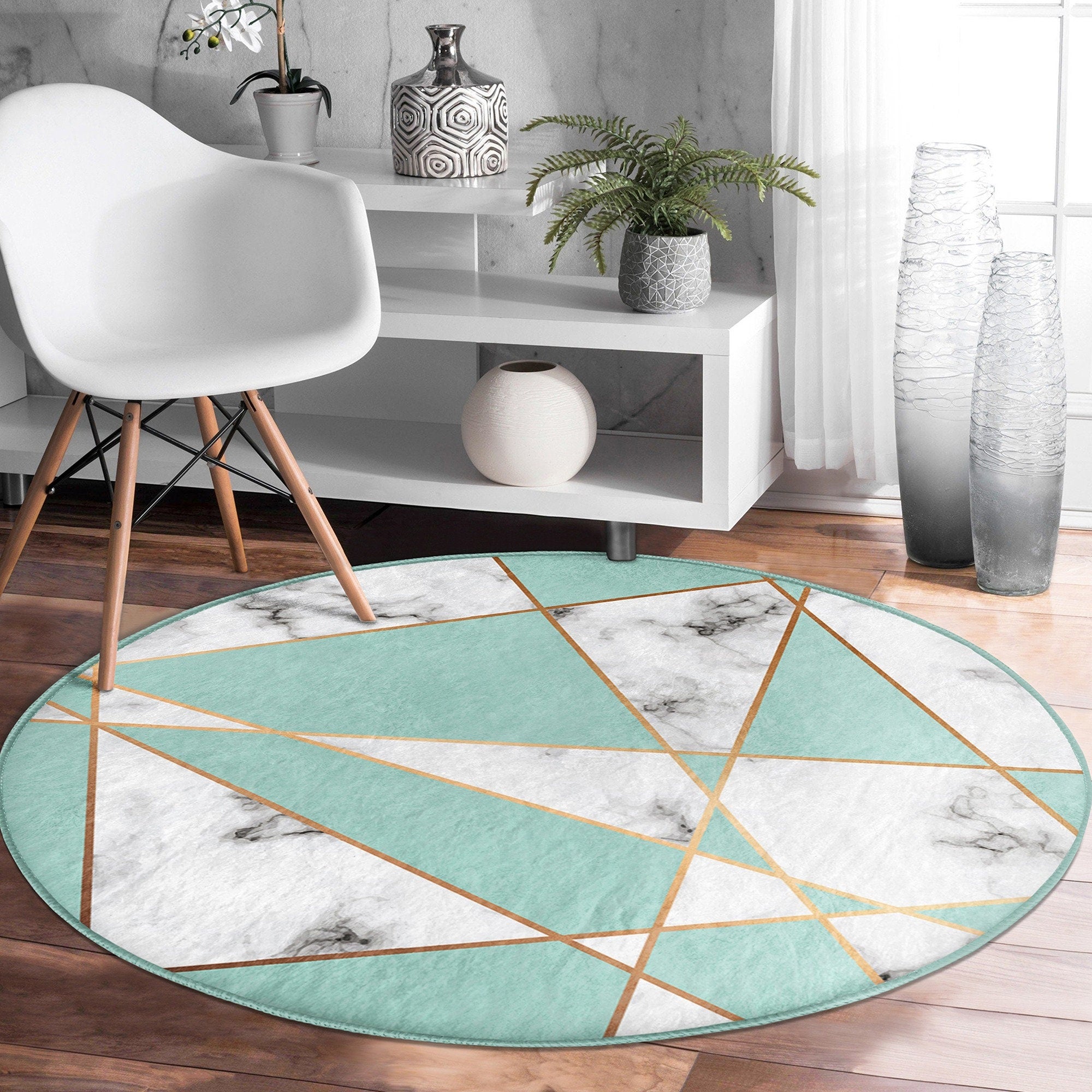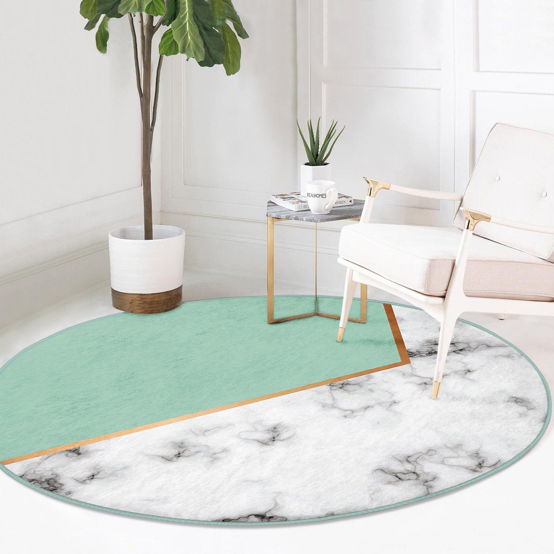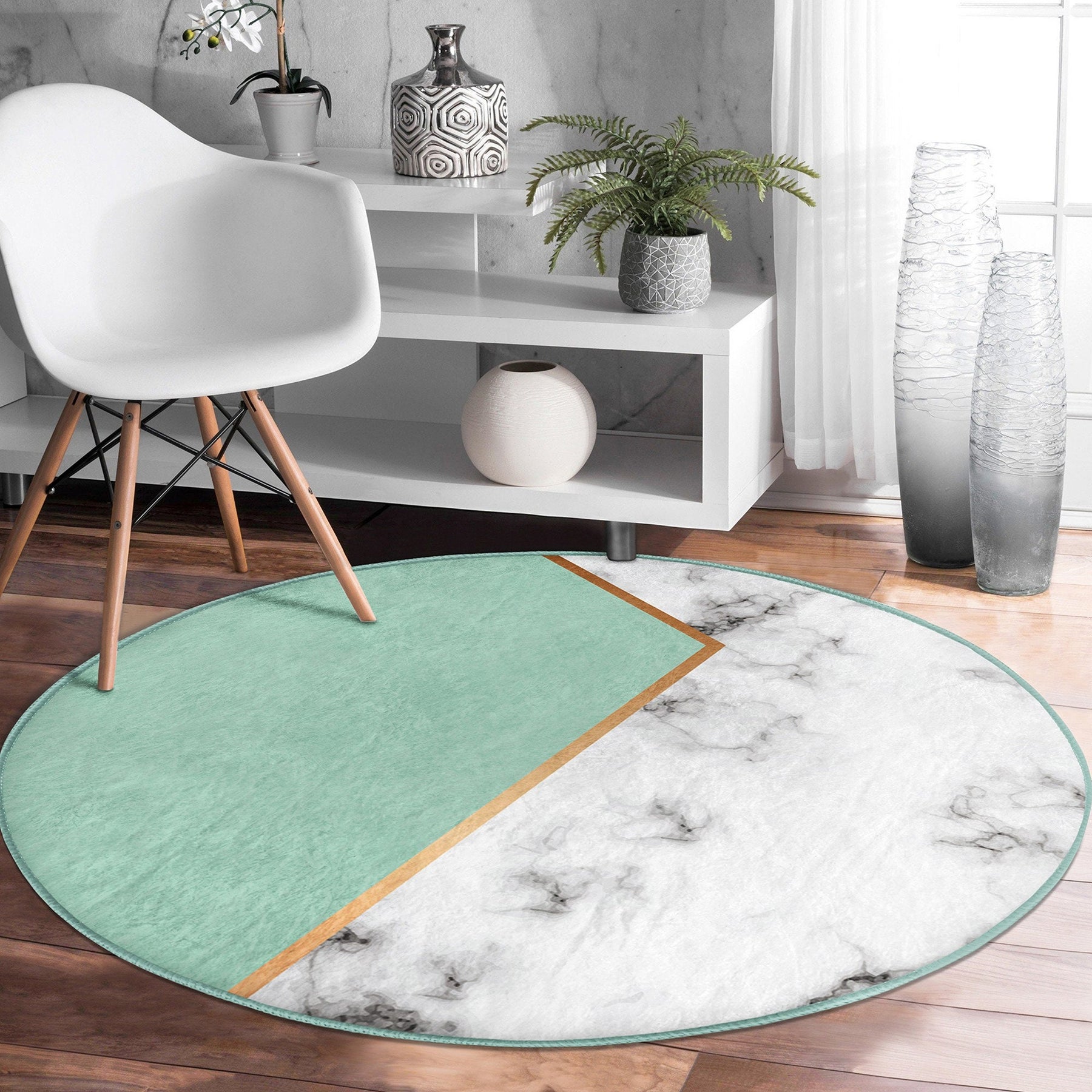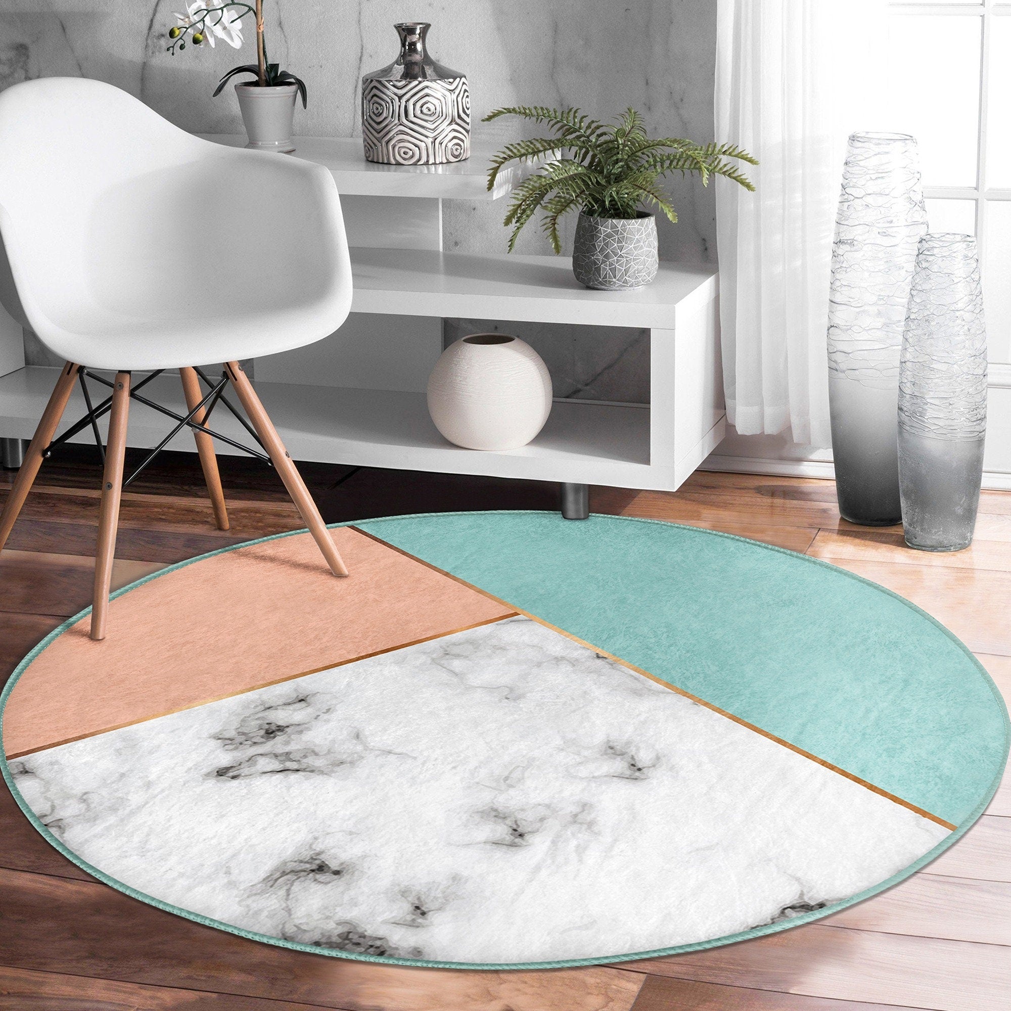Marble Pattern Round Rug|Non-Slip Round Carpet|Geometric Marble Circle Carpet|Decorative Abstract Multi-Purpose Area Rug|Modern Home Decor