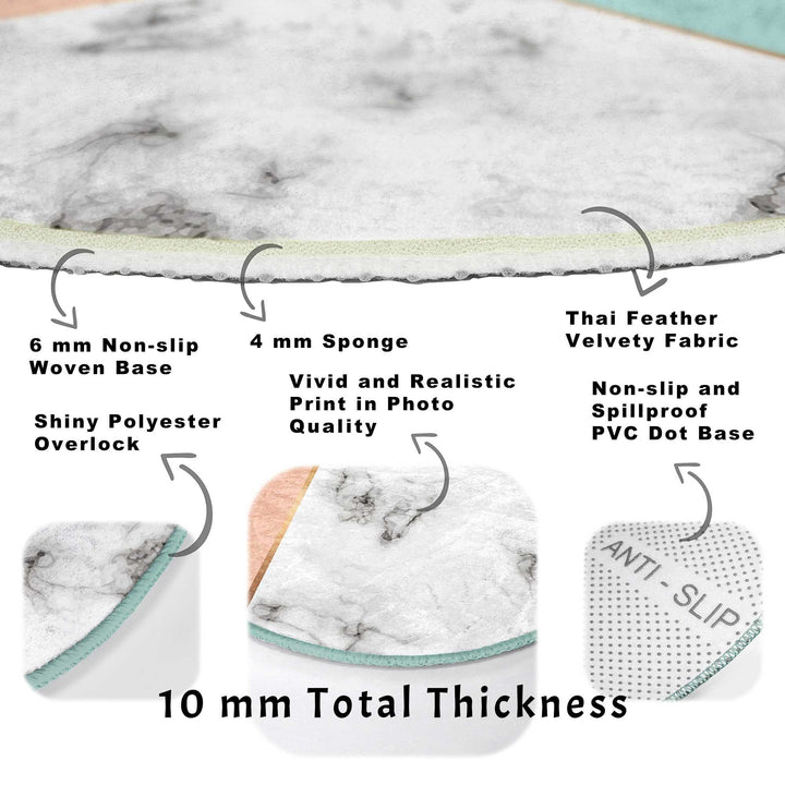 • 10mm thickness. (6 mm non-slip woven base and 4 mm sponge)