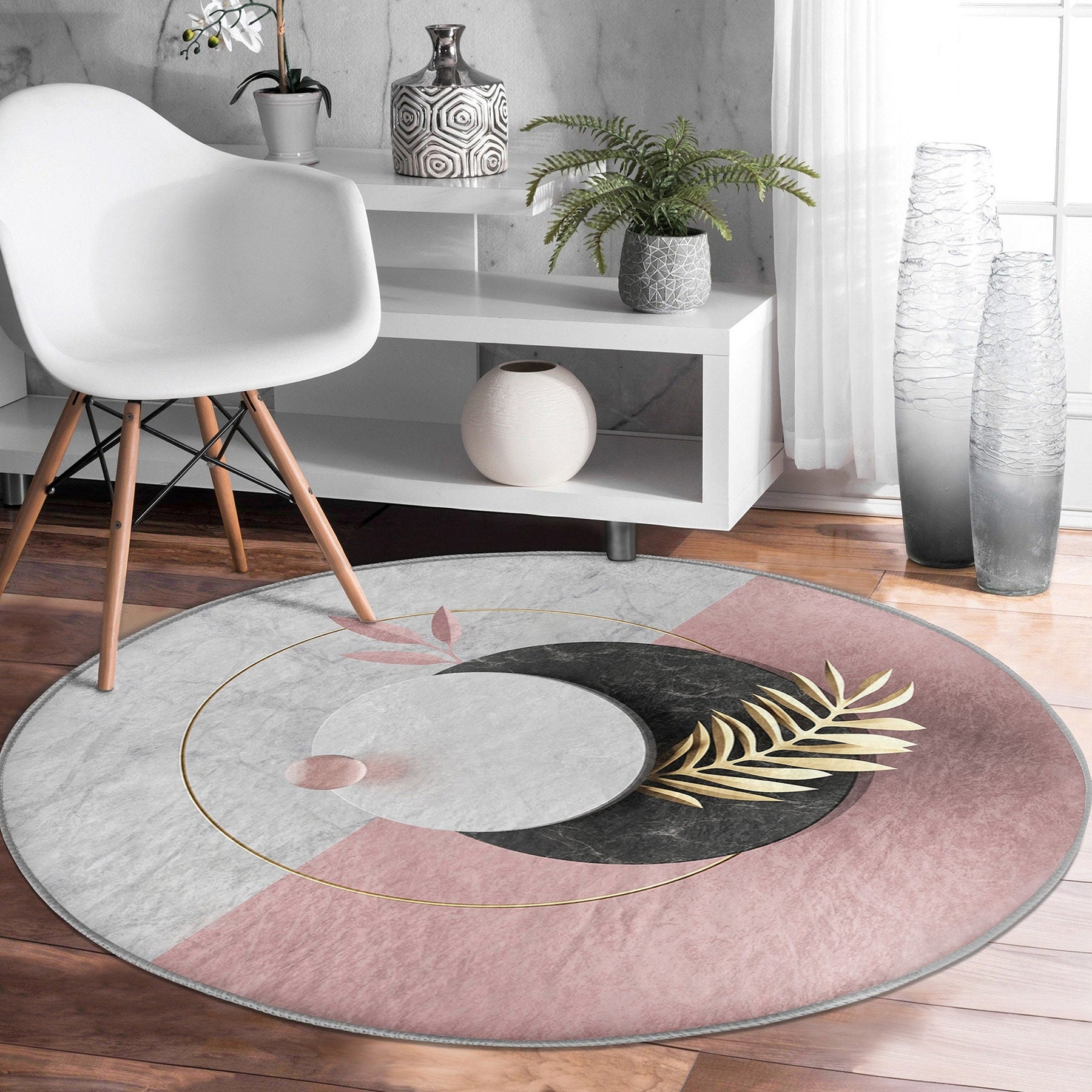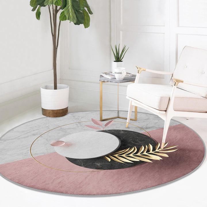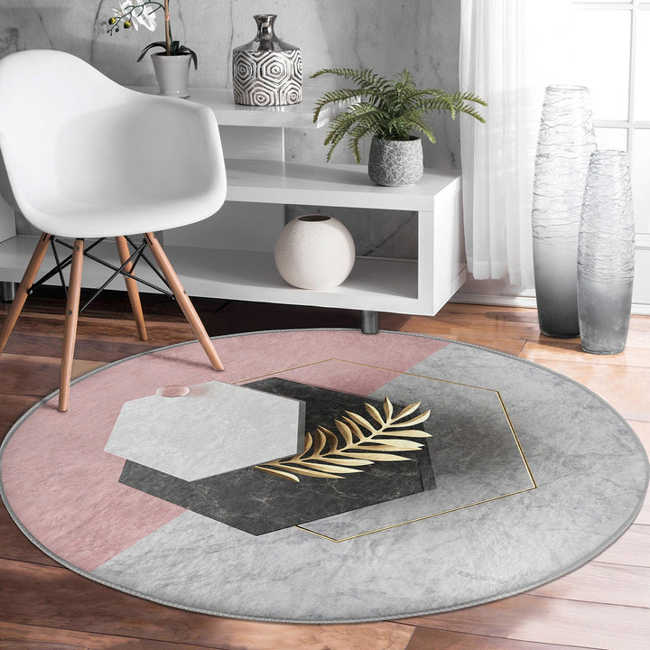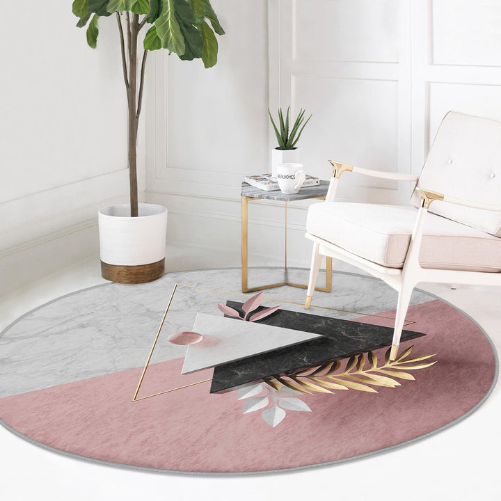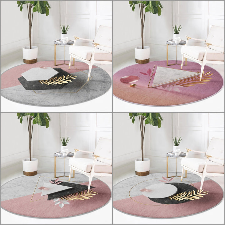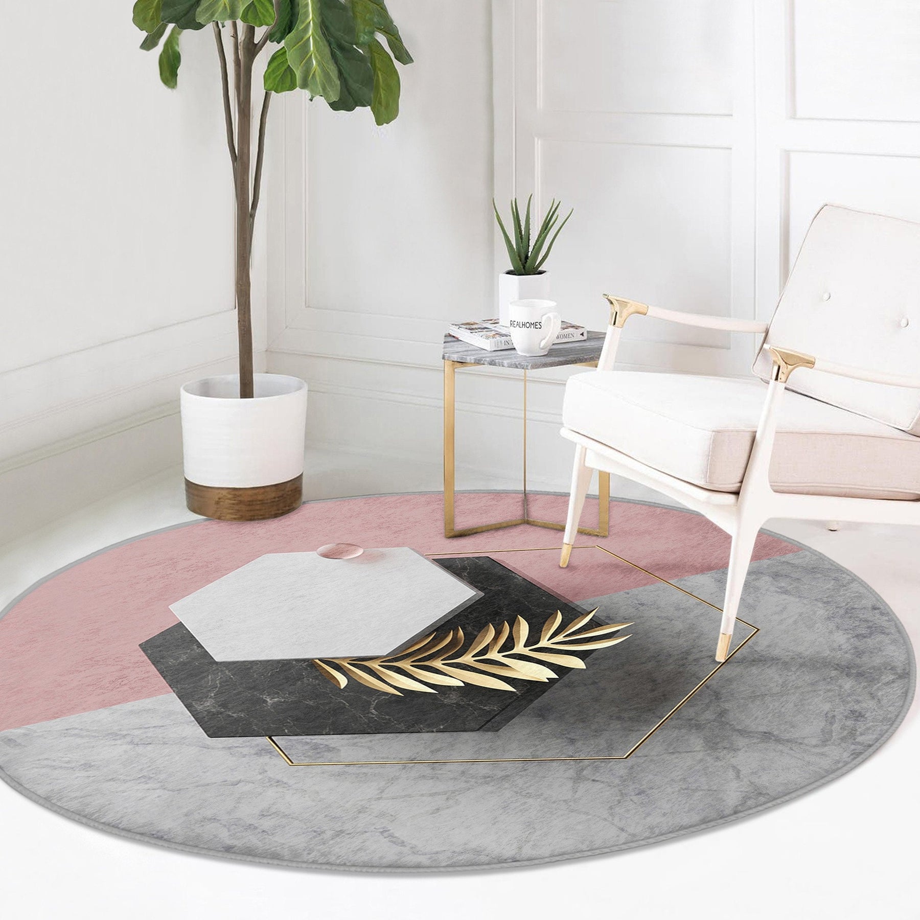 These elegant round floor rugs with Geometric Marble Pattern and Gold Leaf print;