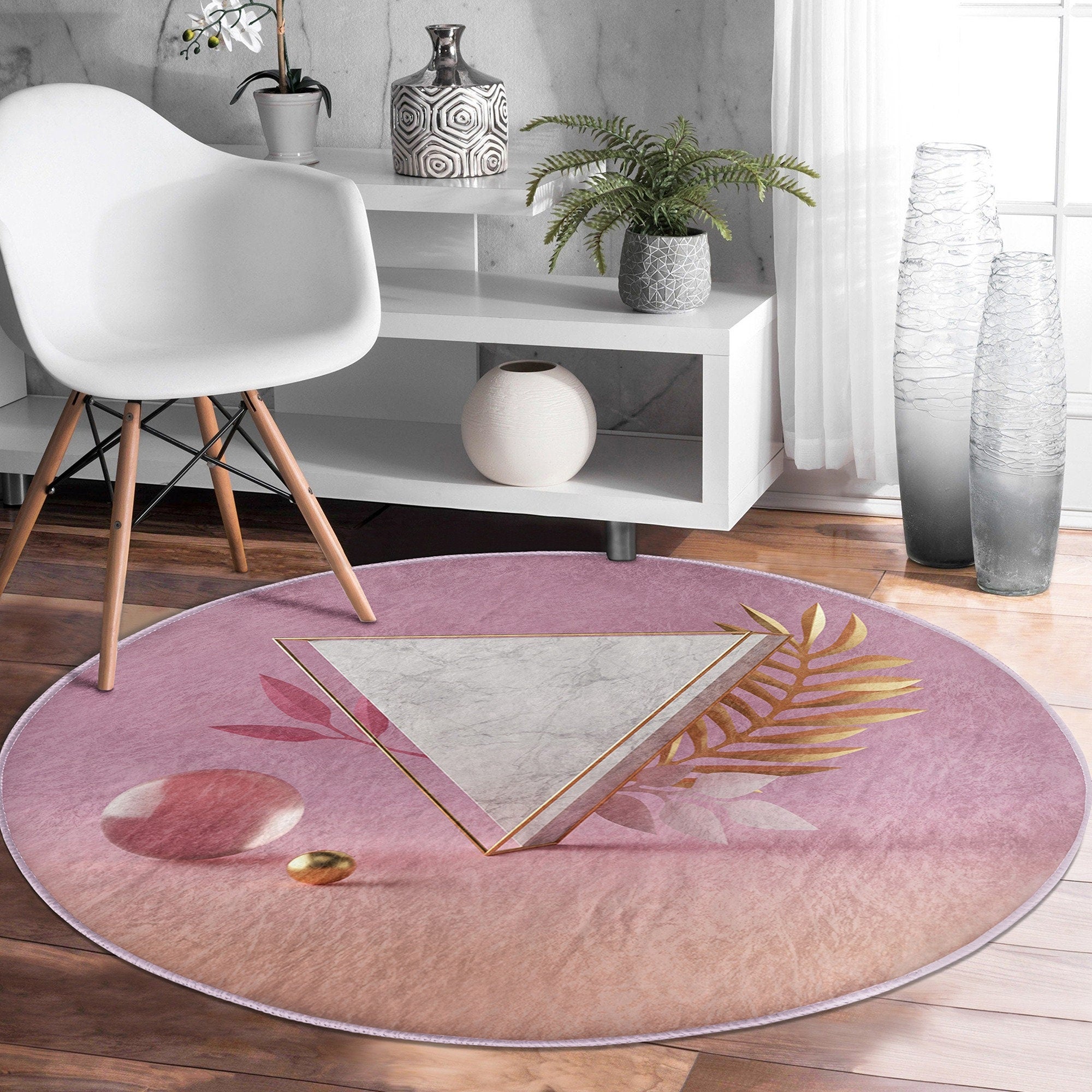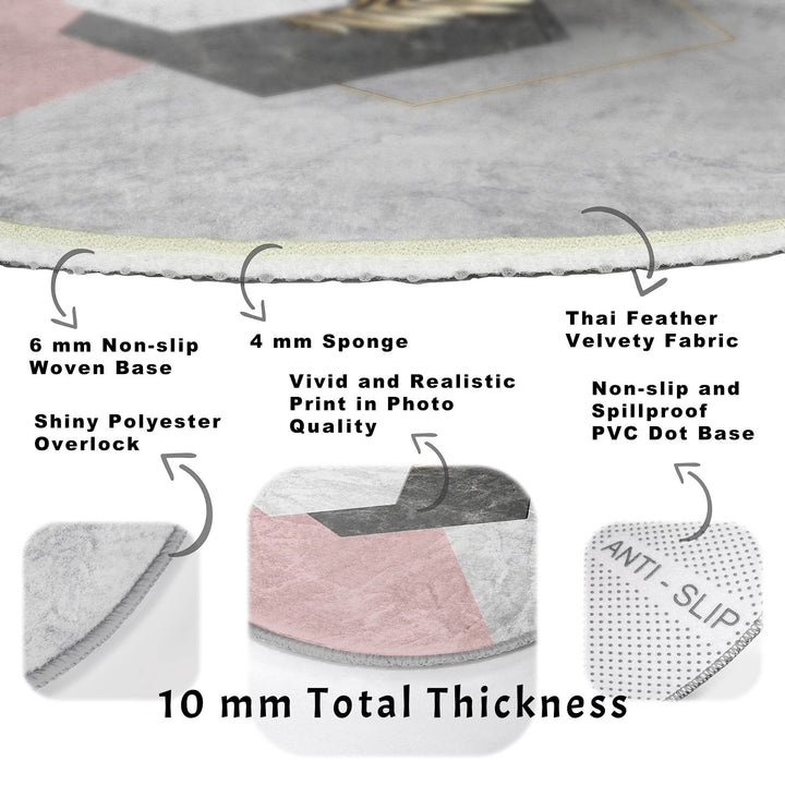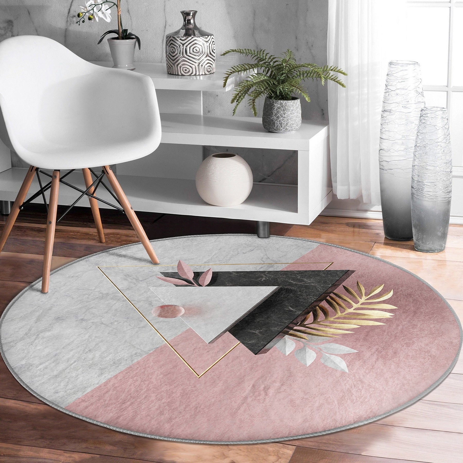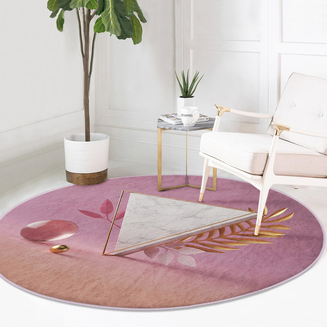 These elegant round floor rugs with Geometric Marble Pattern and Gold Leaf print;