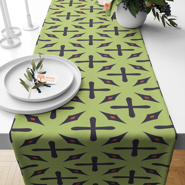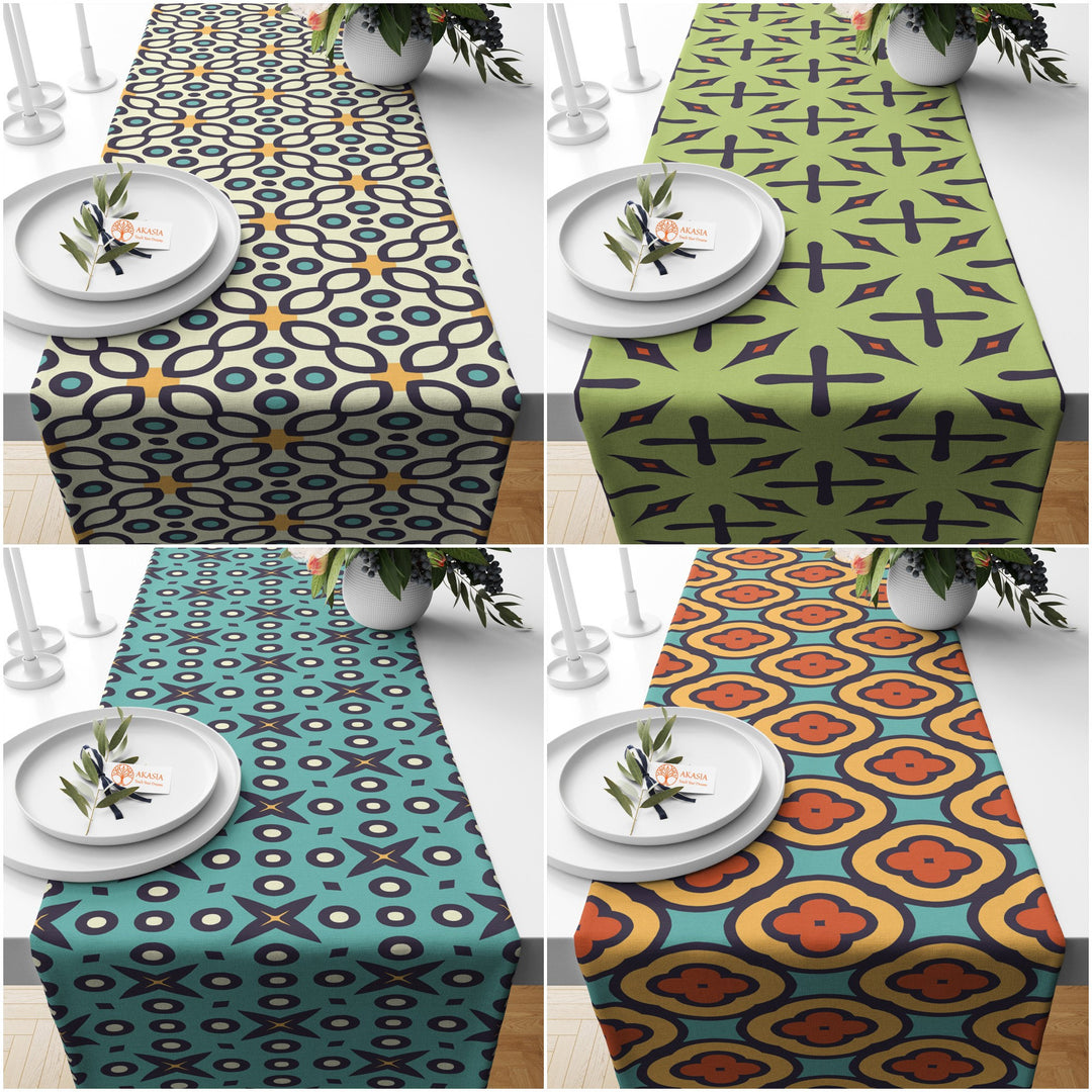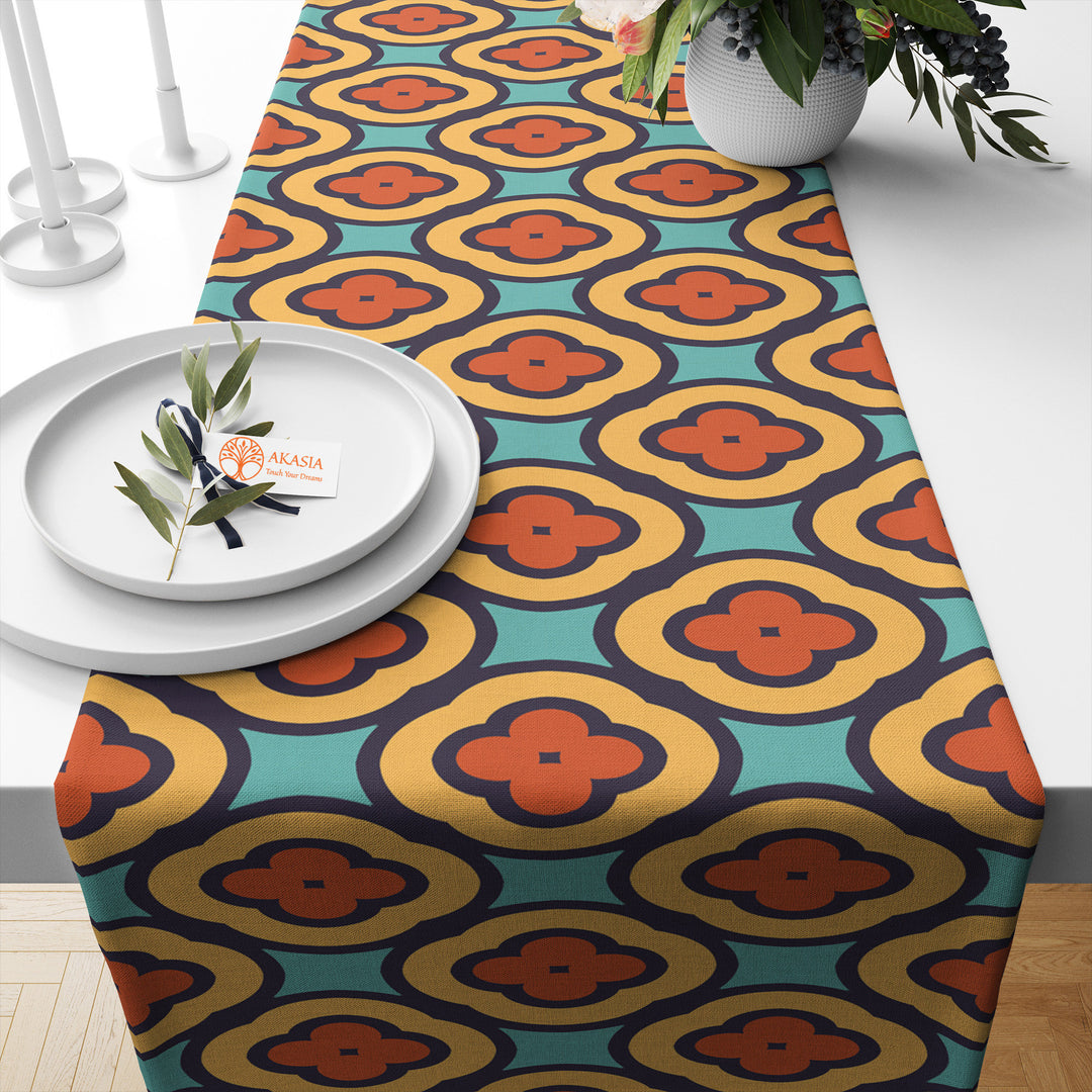 Mid Century Table Runner|Abstract Geometric Tablecloth|Boho Print Modern Home Decor|60's 70's Kitchen Rustic Tabletop|Retro Table Runner