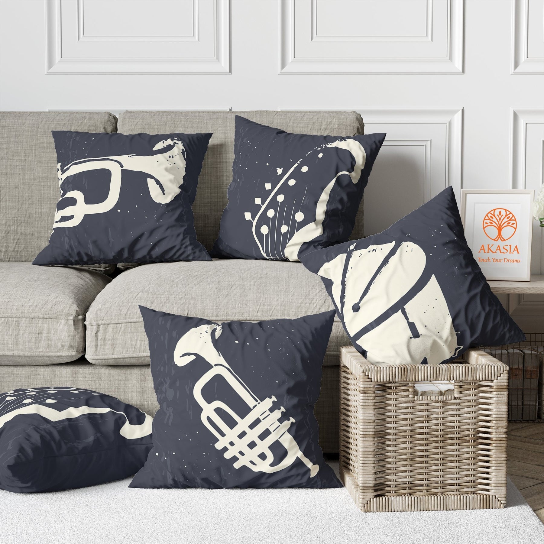 These elegant square decorative farmhouse throw pillow covers with Trumpet/Drum prints;