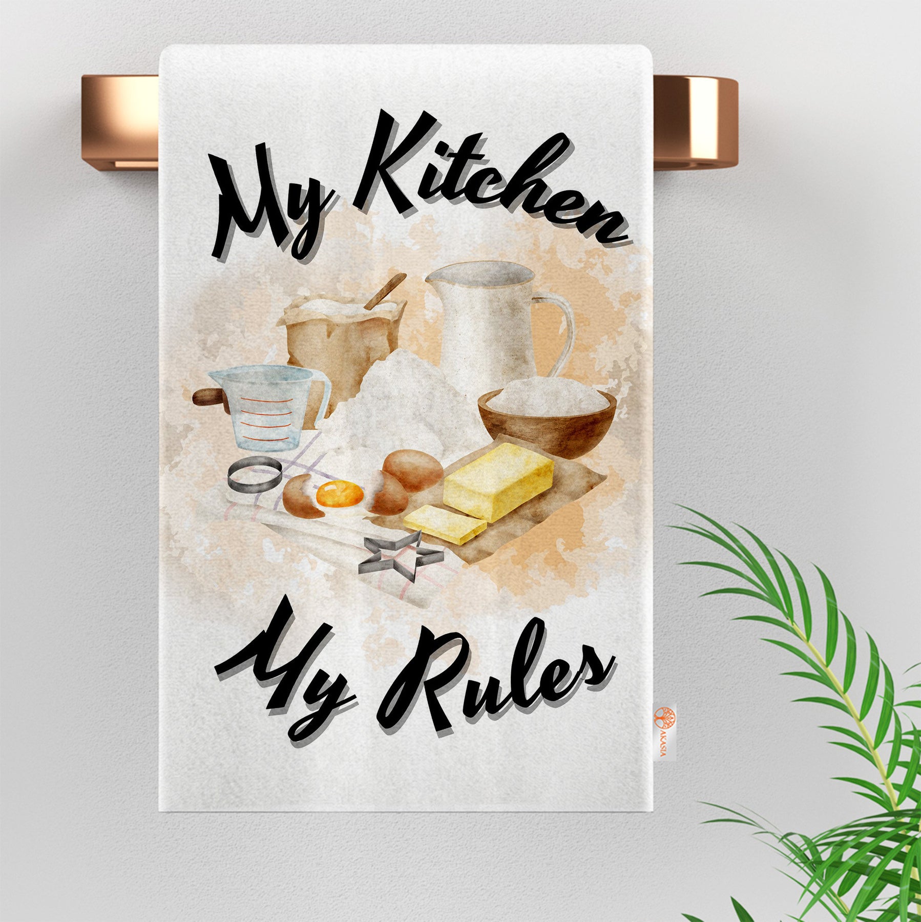 These elegant decorative rectangle kitchen/dish/hand/tea towels with My Kitchen My Rules, sunflower, cookies and flower print;
