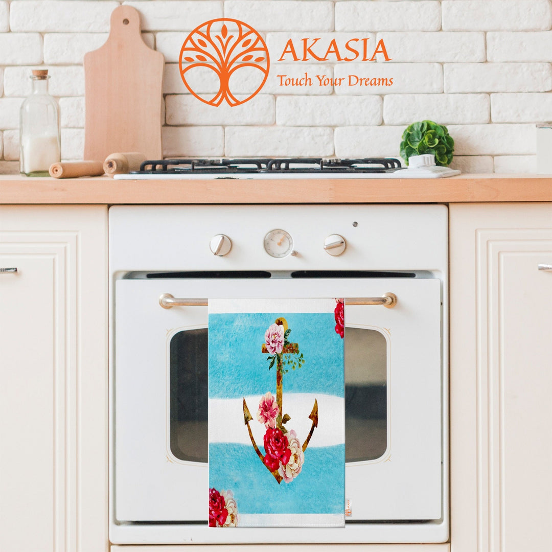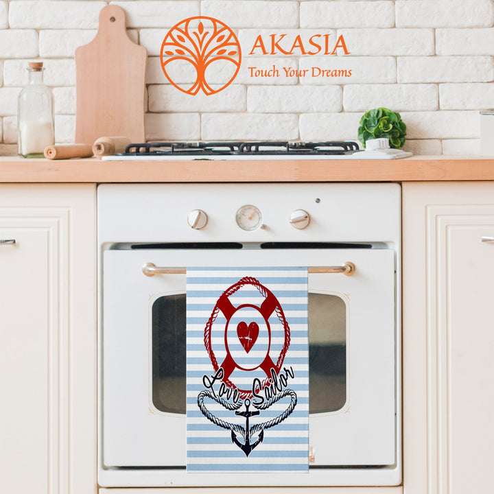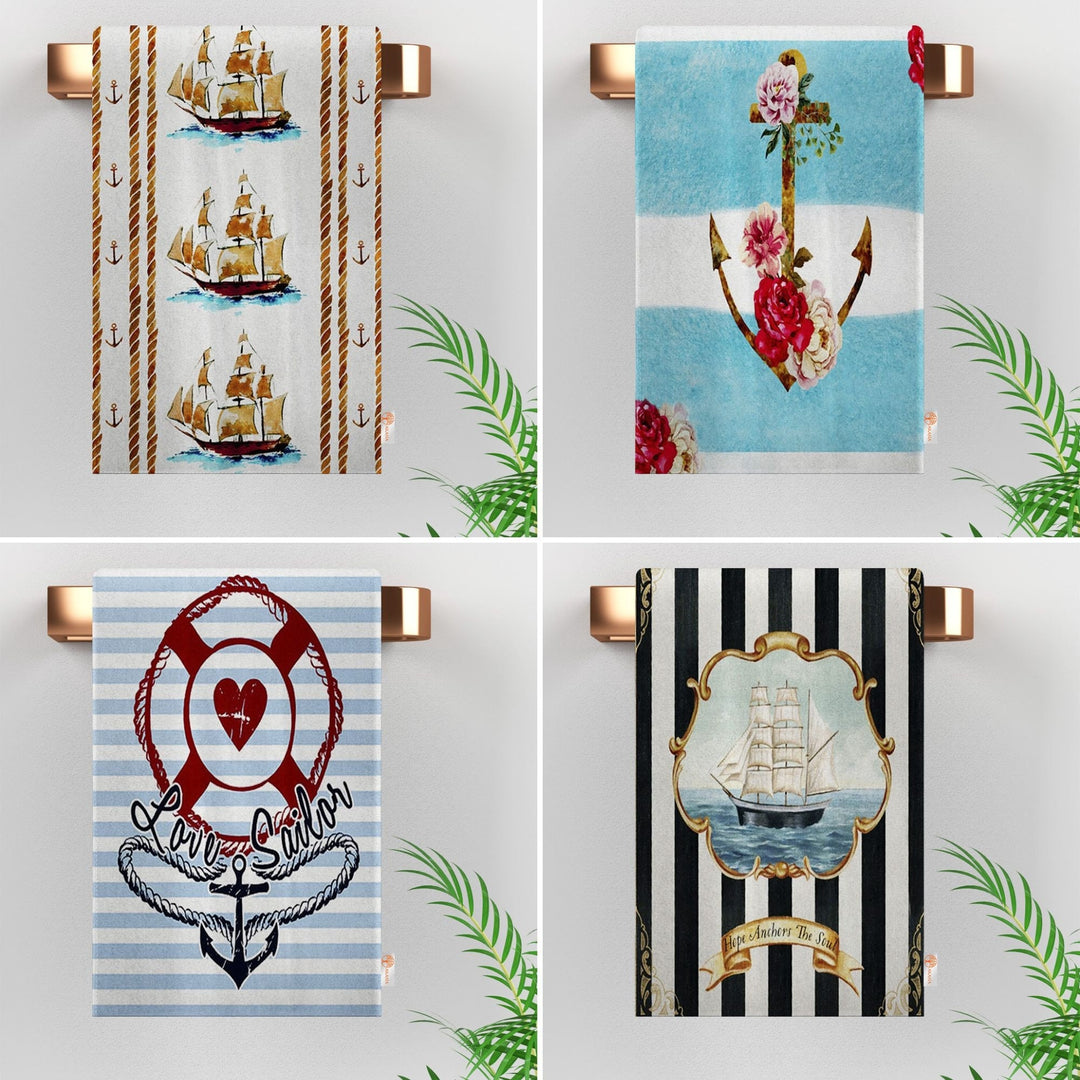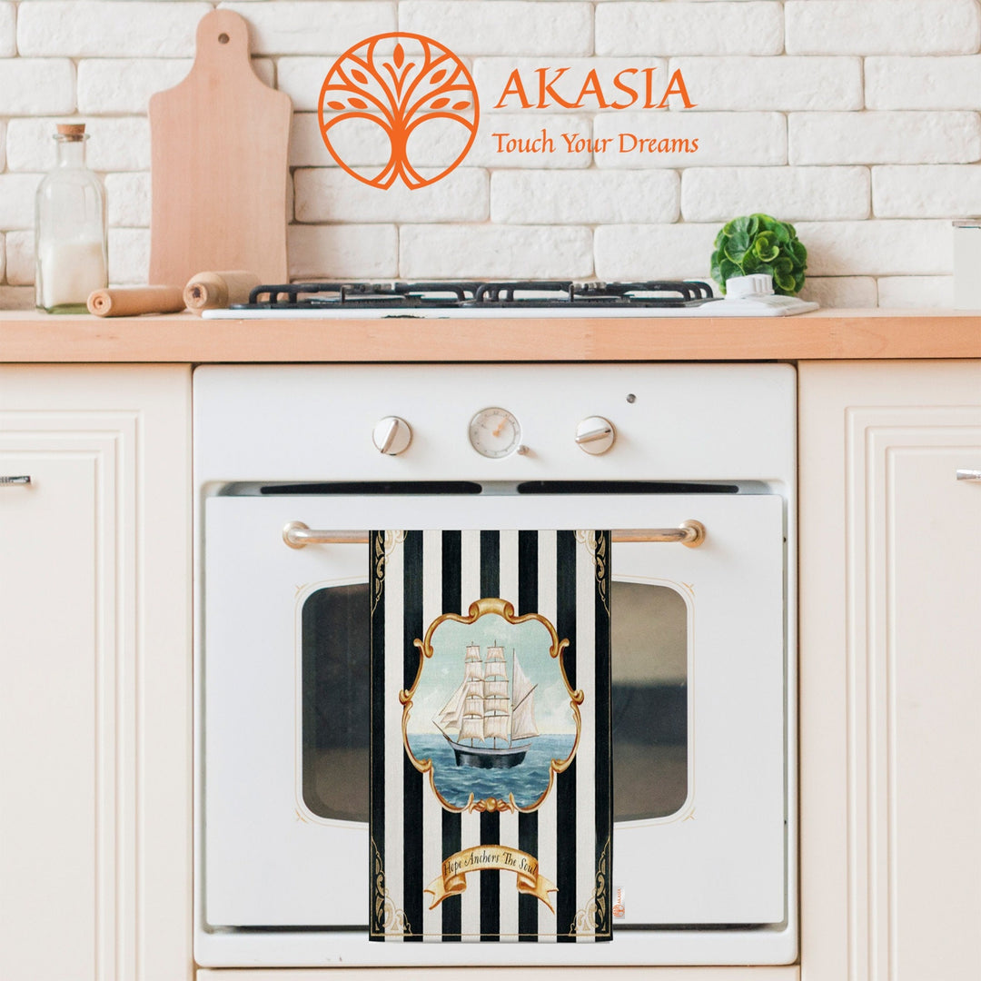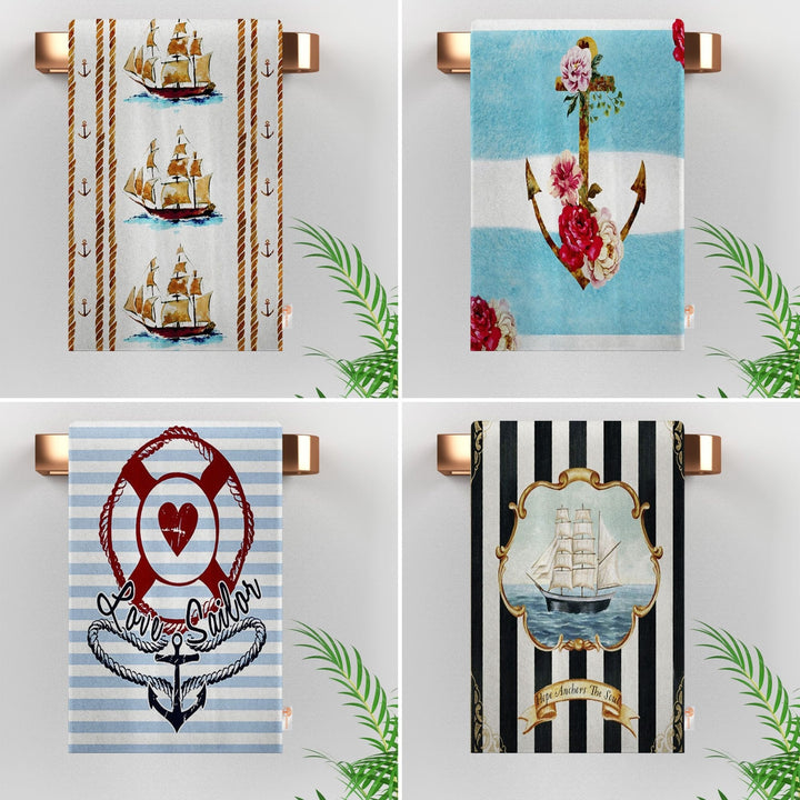 These elegant decorative rectangle kitchen/dish/hand/tea towels with Floral Anchor, Ship, Love Sailor, Hope Anchors the Soul prints and striped design;