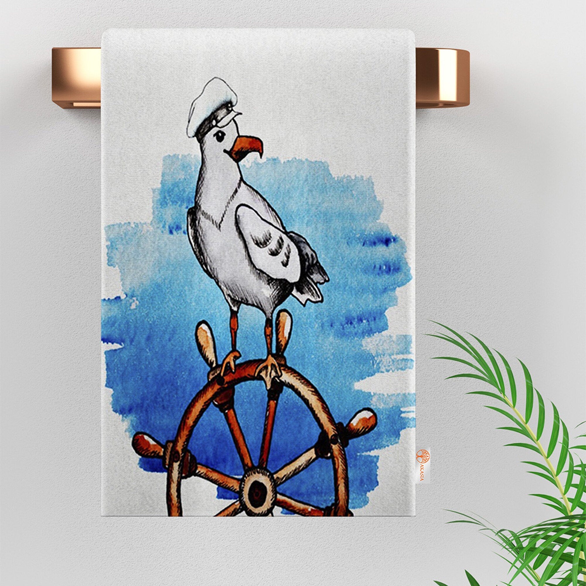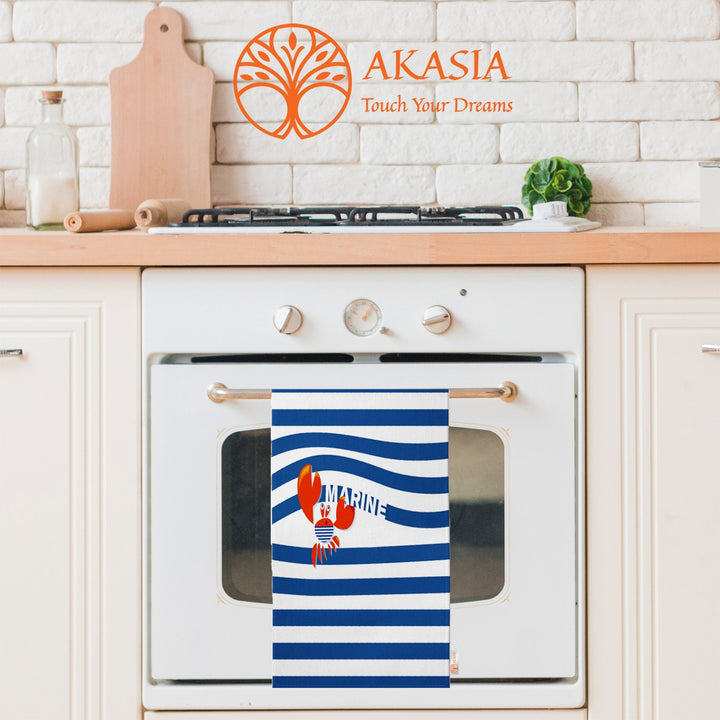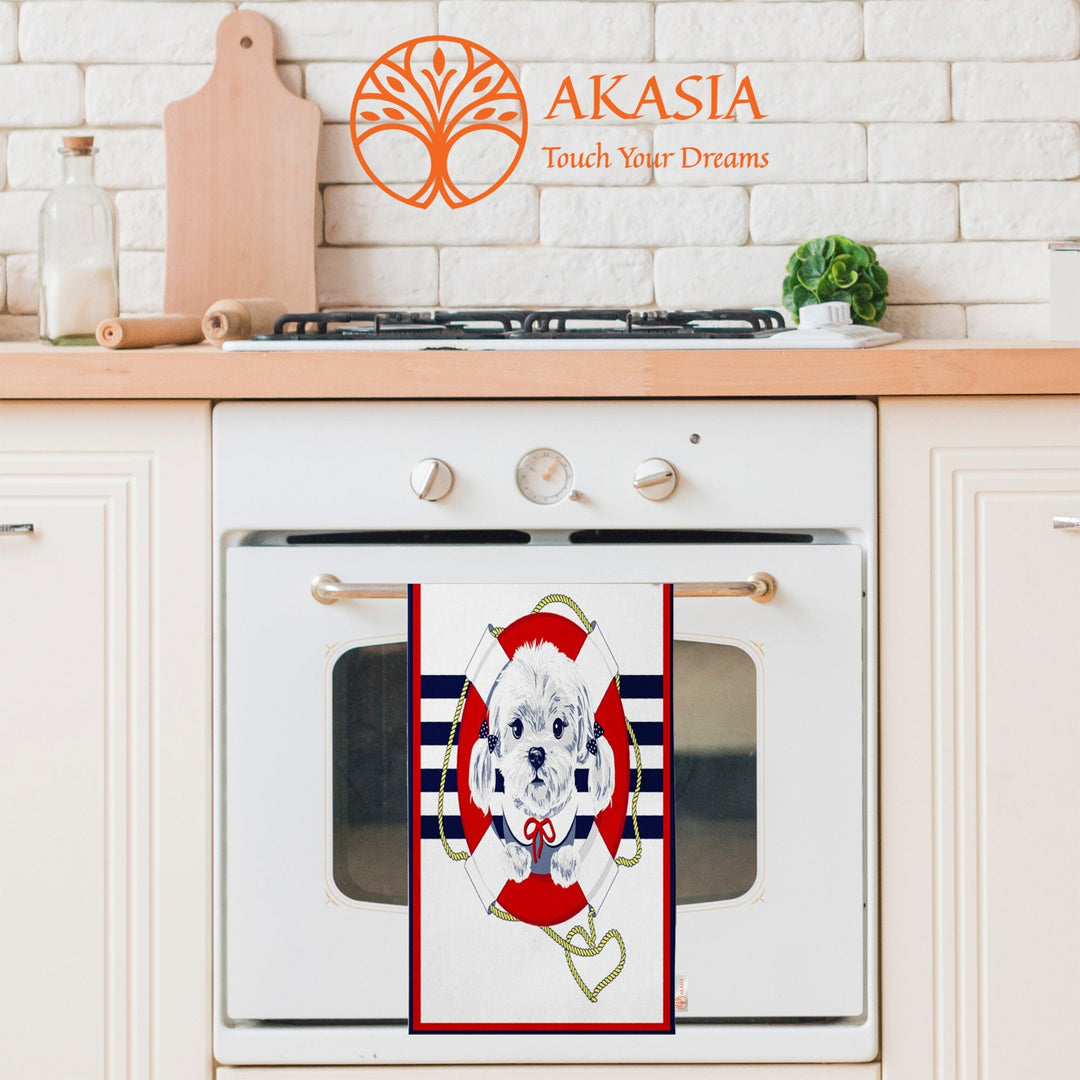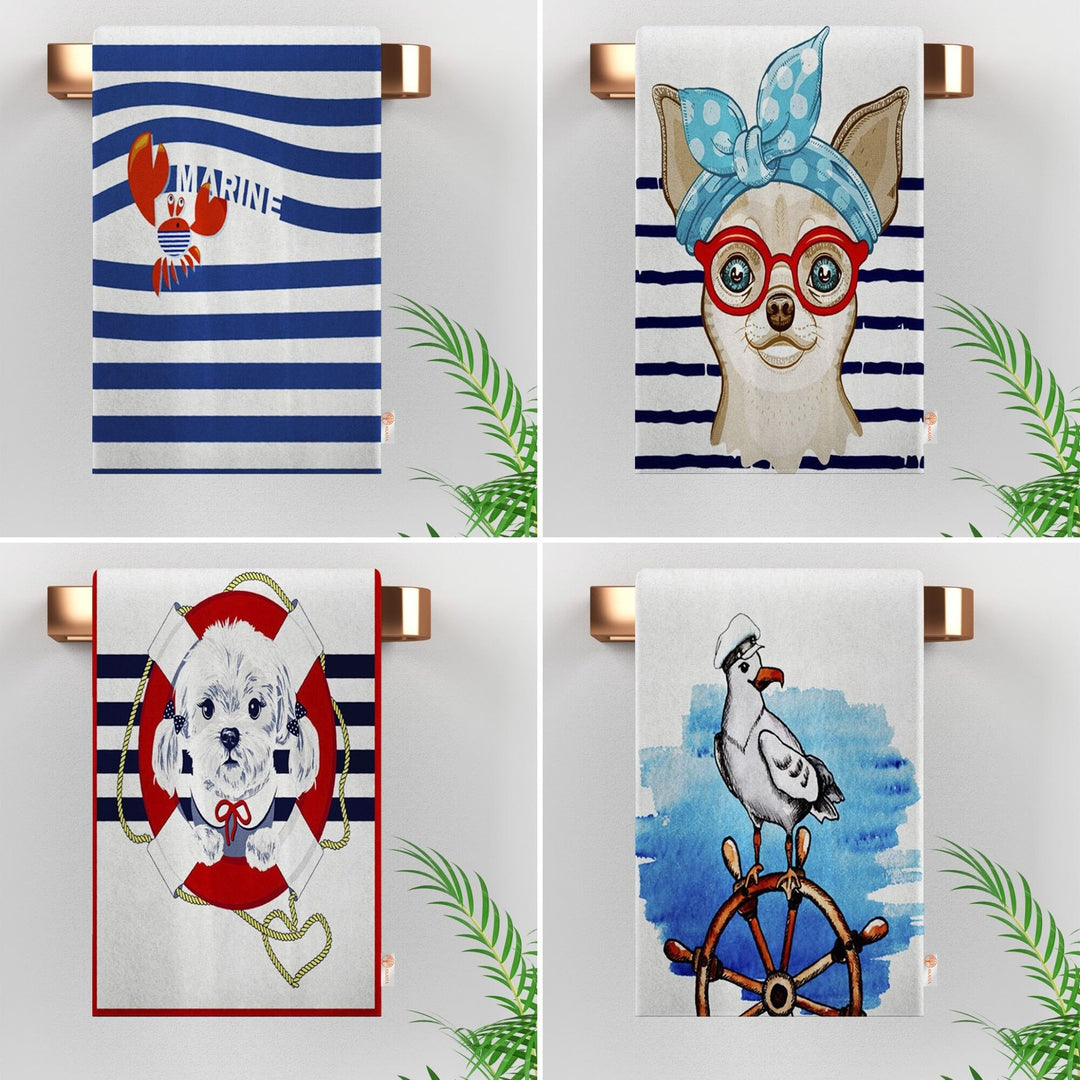 These elegant decorative rectangle kitchen/dish/hand/tea towels with Animal Sailor, Seagull, Dog and Crab print on striped design;