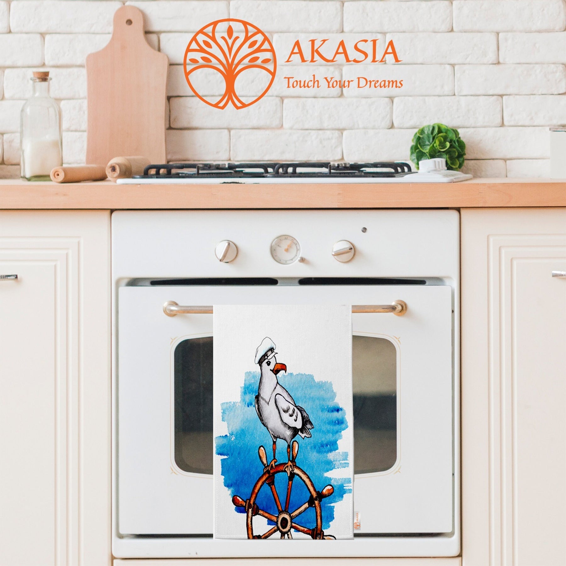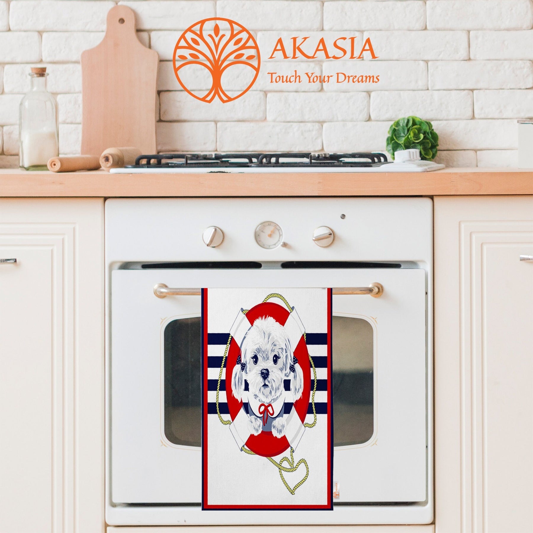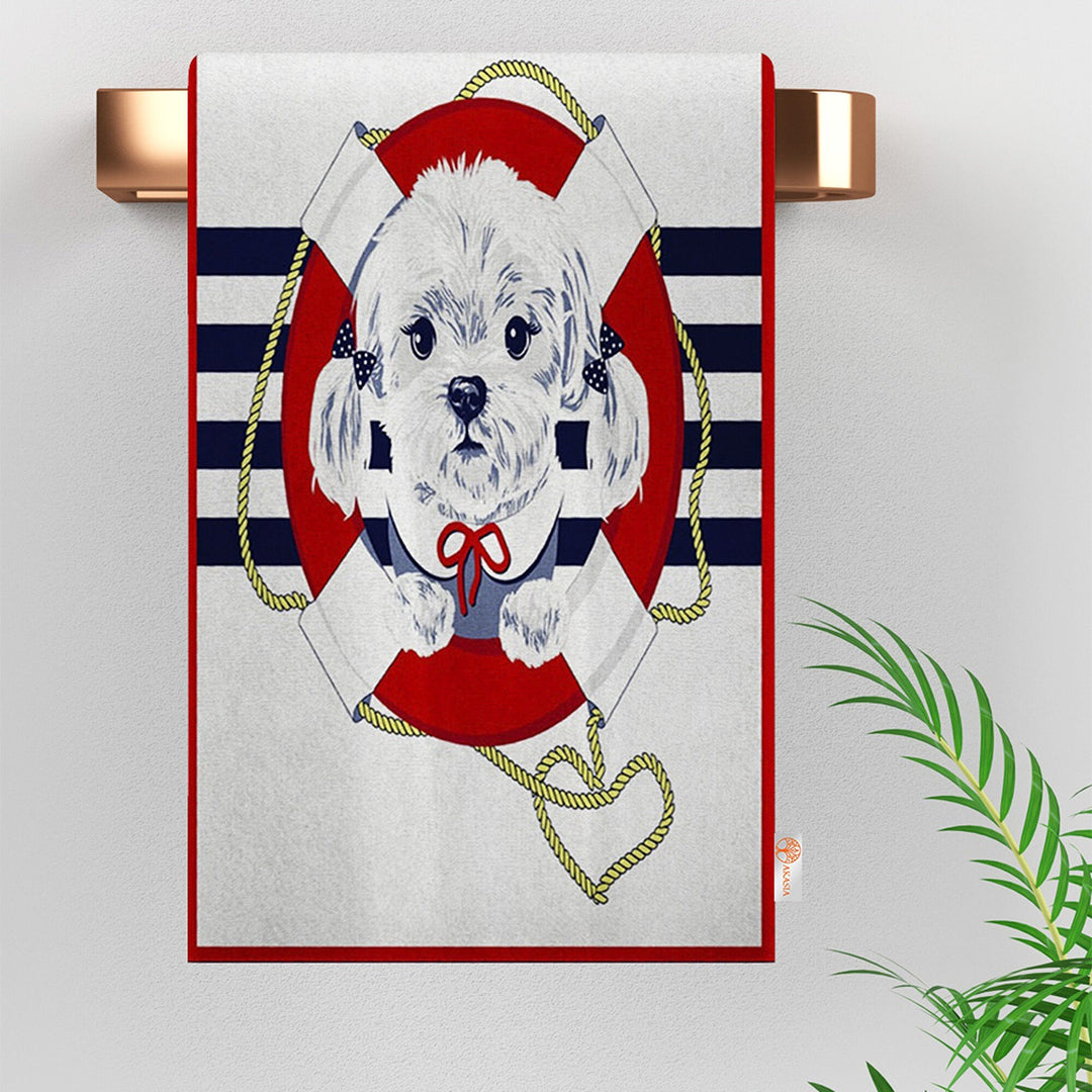 These elegant decorative rectangle kitchen/dish/hand/tea towels with Animal Sailor, Seagull, Dog and Crab print on striped design;