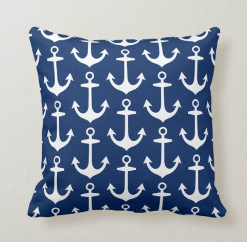 These square decorative farmhouse/beach house striped throw pillow covers with anchor;