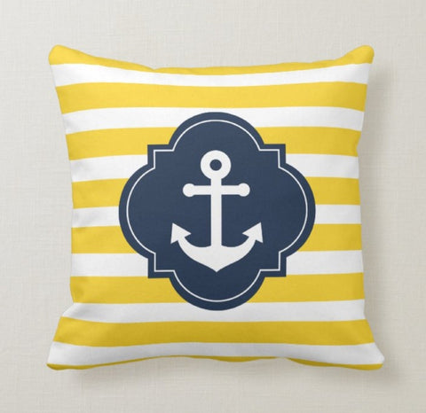 Imagine these "Blue and Yellow Nautical Pillows" on your sofa/seat to welcome your family and friends!