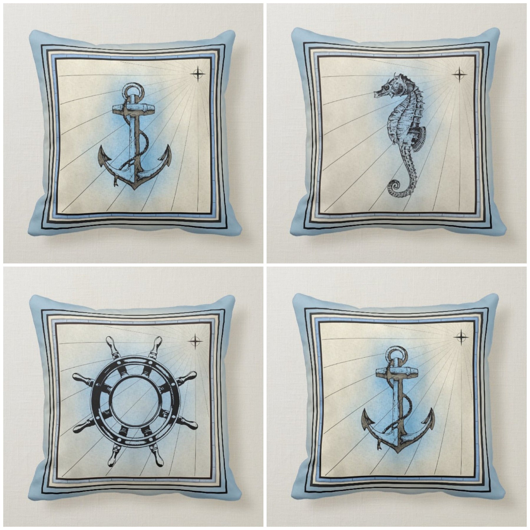 Imagine these "Blue and Gray Nautical Pillows" on your sofa/seat to welcome your family and friends!