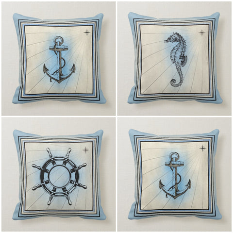 Anchor Wheel Seahorse Yacht Pillow Pillow Cover