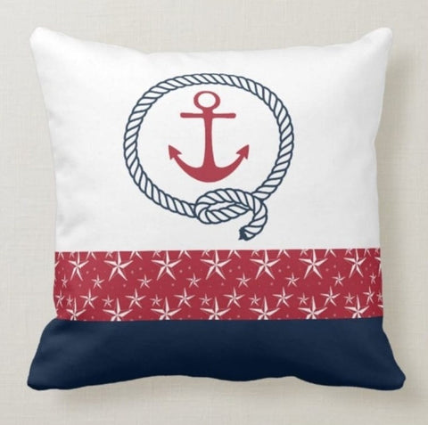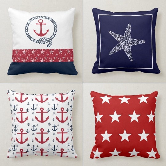 Imagine these "Navy Blue and Red Nautical Pillows" on your sofa/seat to welcome your family and friends!