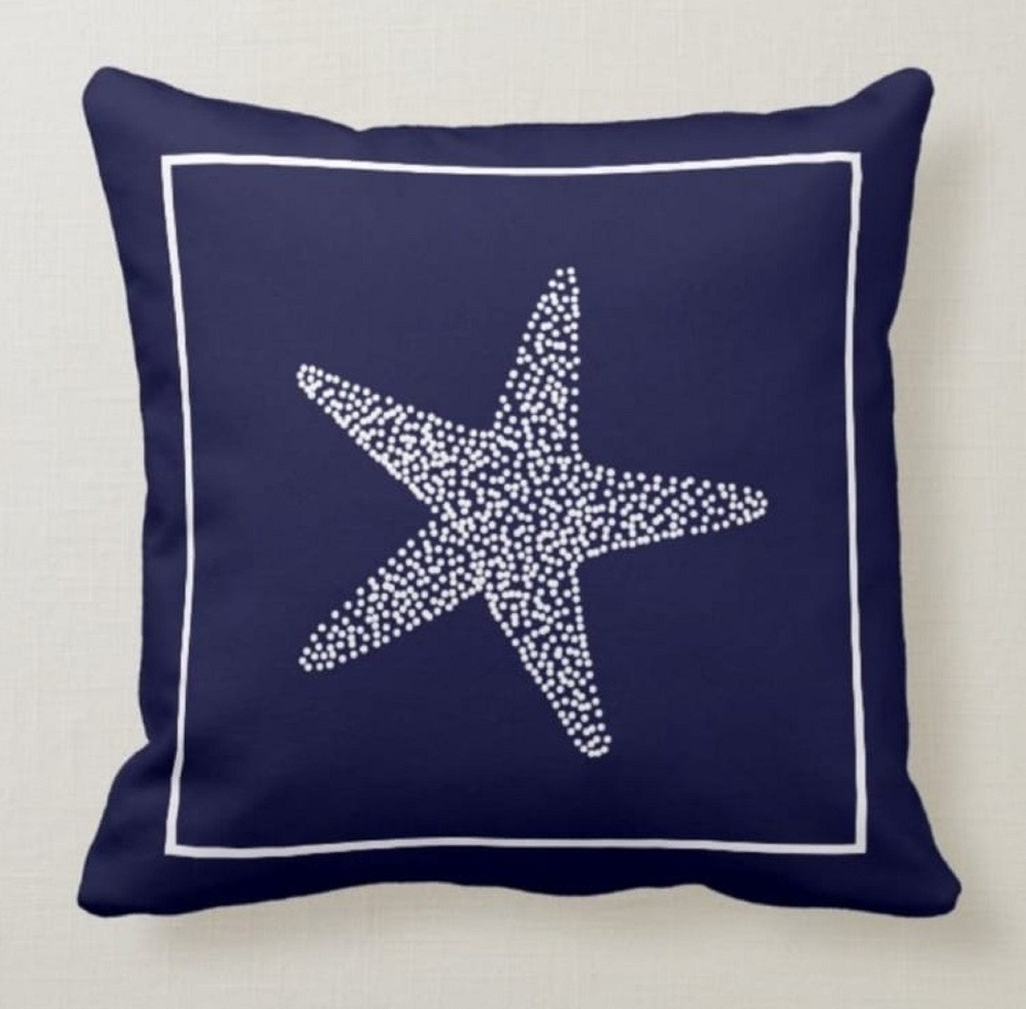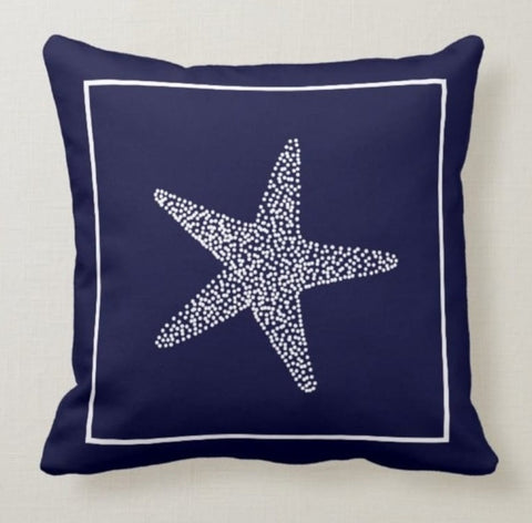 These square decorative farmhouse/beach house throw pillow covers with anchor and starfish;