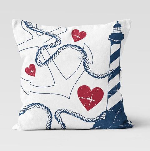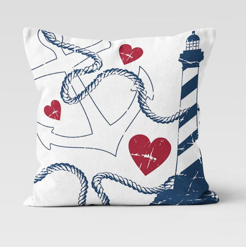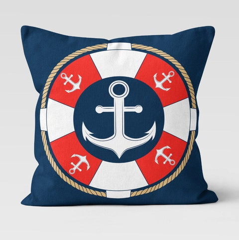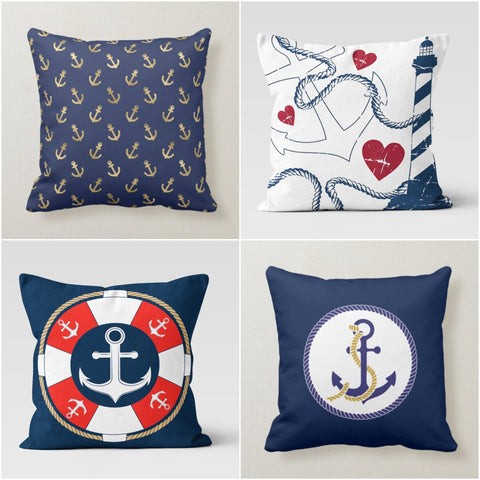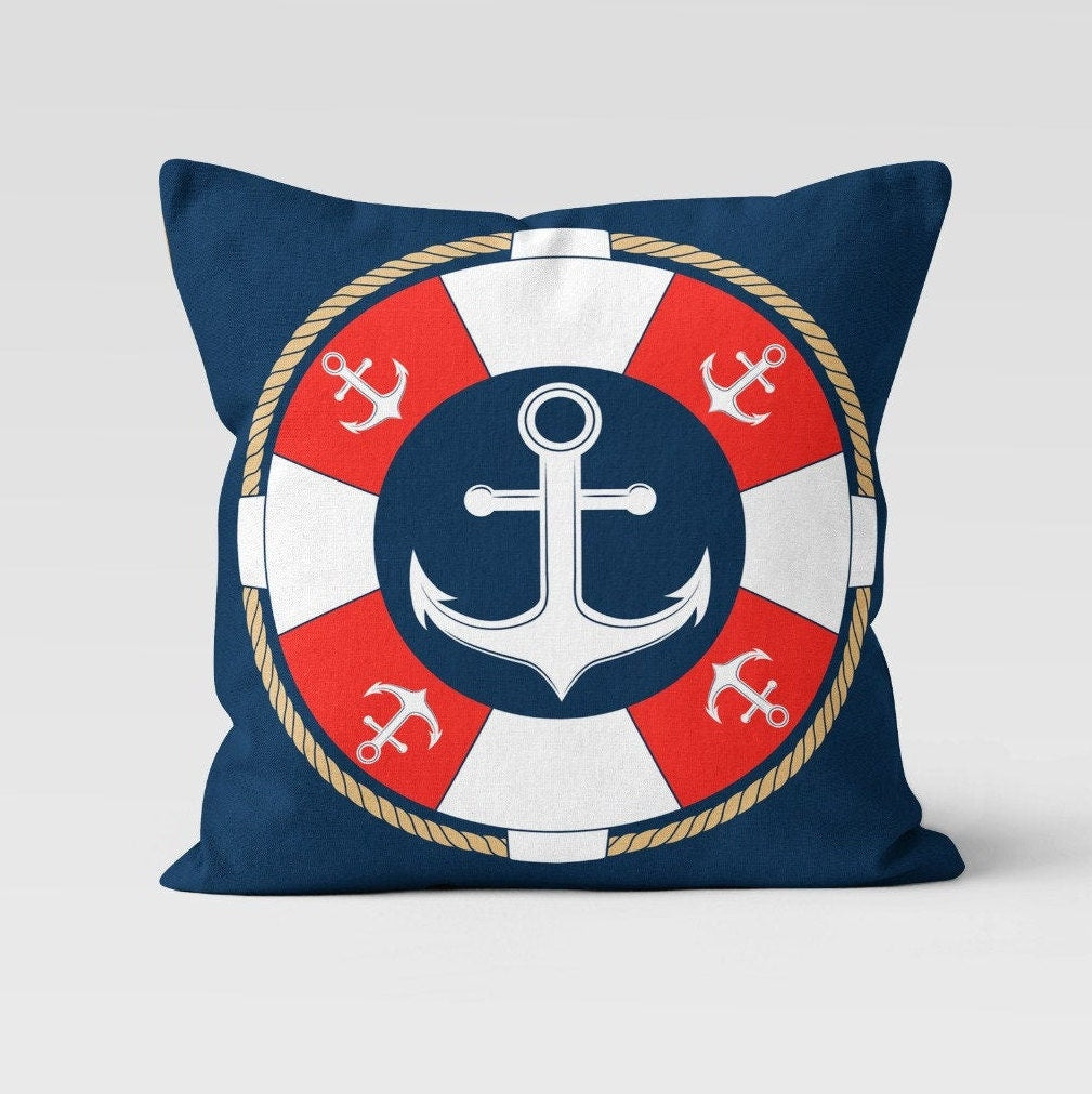 These elegant square decorative beach house throw pillow covers with anchor and life saver;