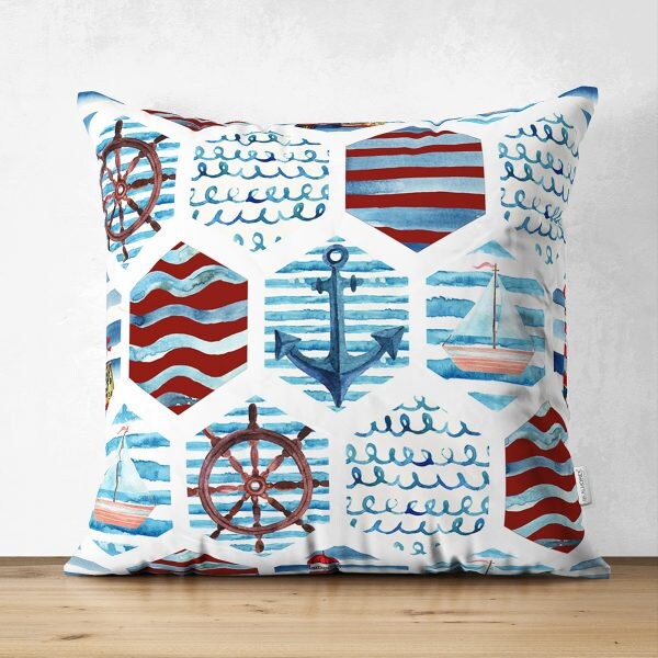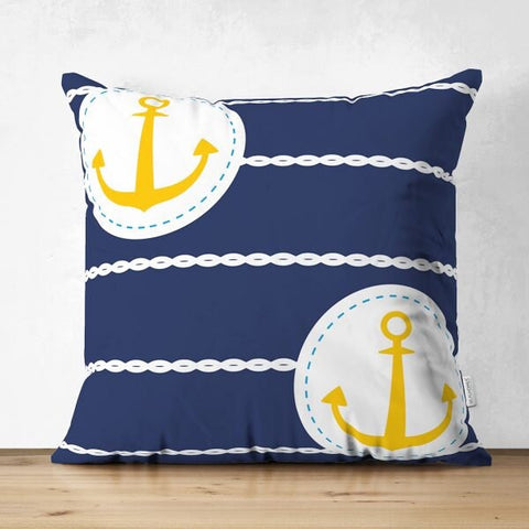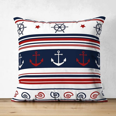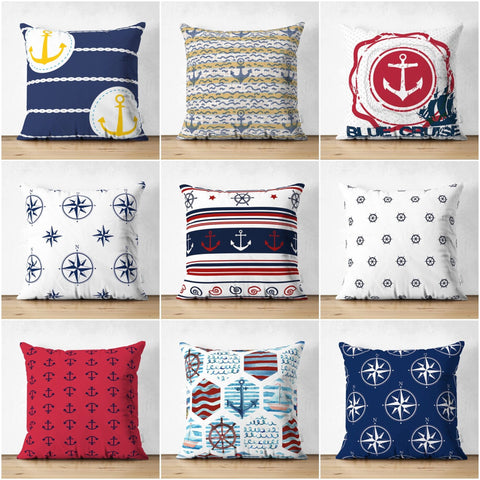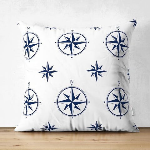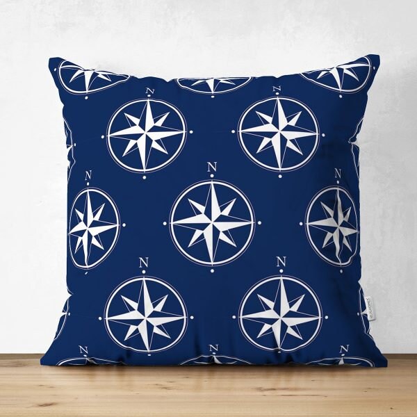 These elegant square decorative double-sided nautical pillow covers with navy anchor and compass;