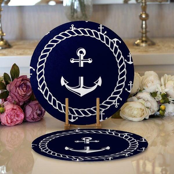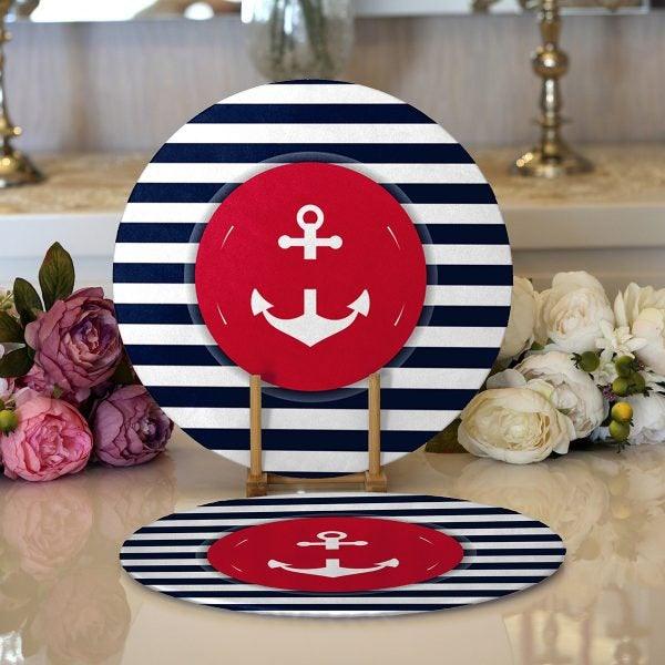 Nautical Placemat & Table Runner|Beach House Table Top|Set of 2 Coastal Supla Table Mat|Round American Service Dining Underplate and Coaster
