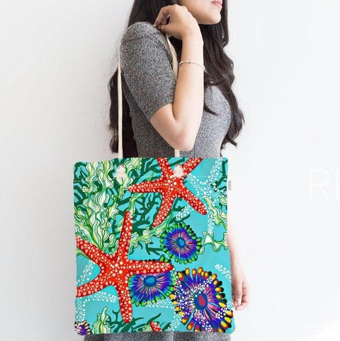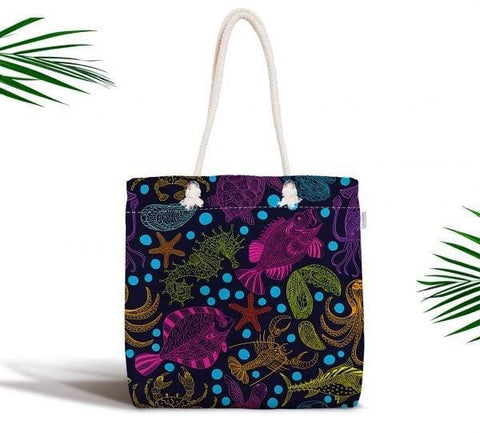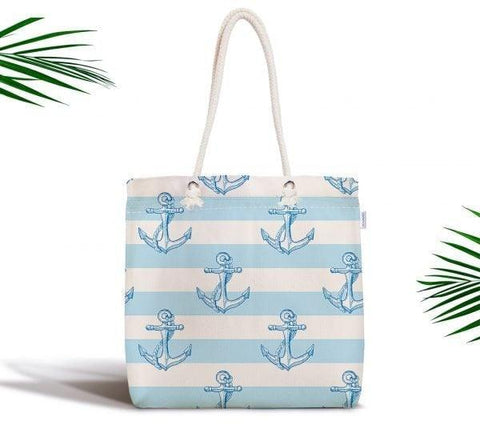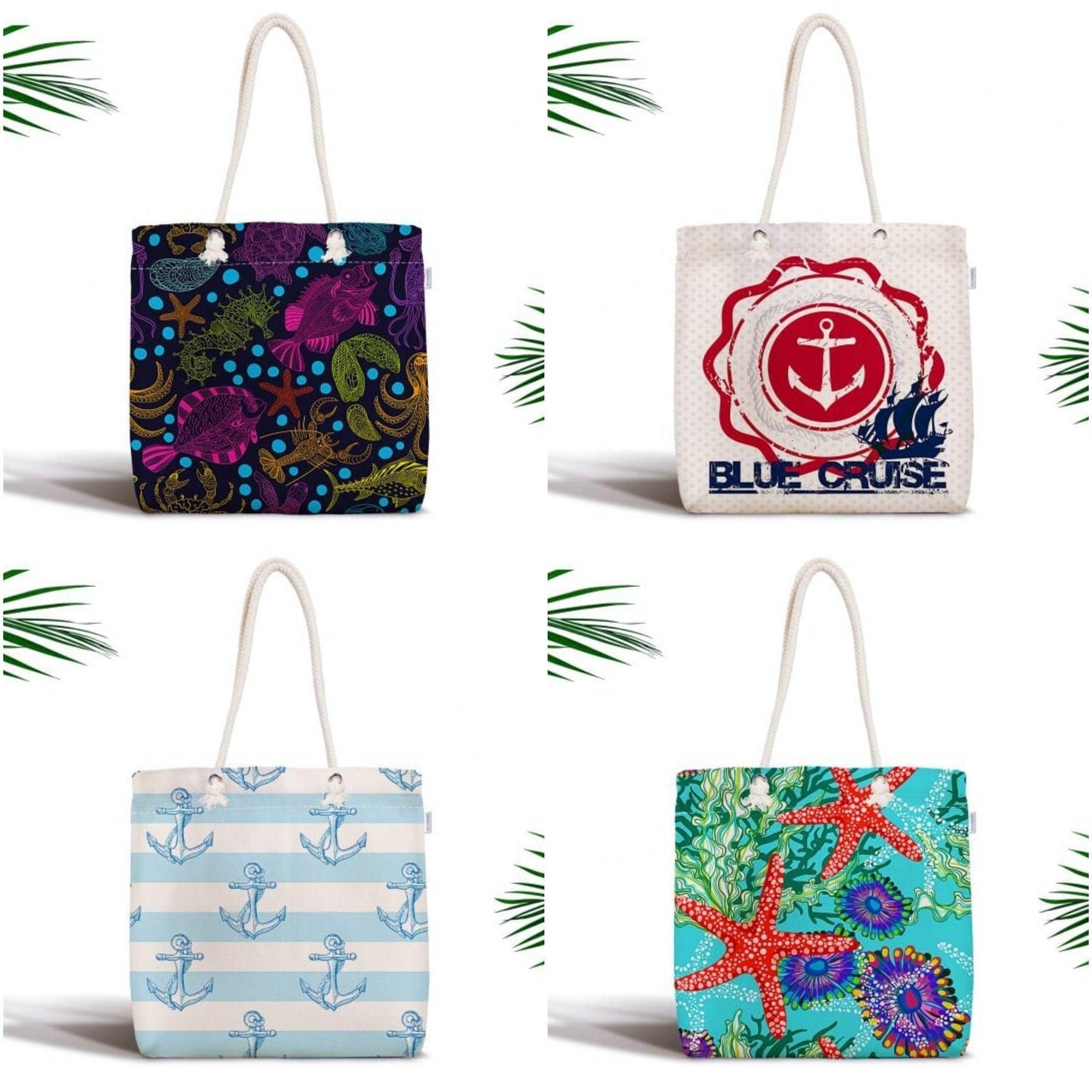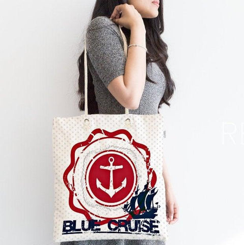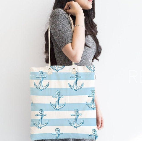 Nautical Shoulder Bag|Navy Anchor Fabric Handbag|Sea Creatures Handbag|Marine Beach Tote Bag|Digital Print Messenger Bag|Summer Trend Bag