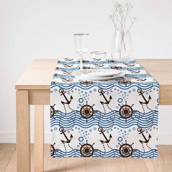 Nautical Table Runner|High Quality Suede Navy Anchor Table Runner|Anchor Table Cover|Decorative Nautical Tabletop|Outdoor Beach House Decor