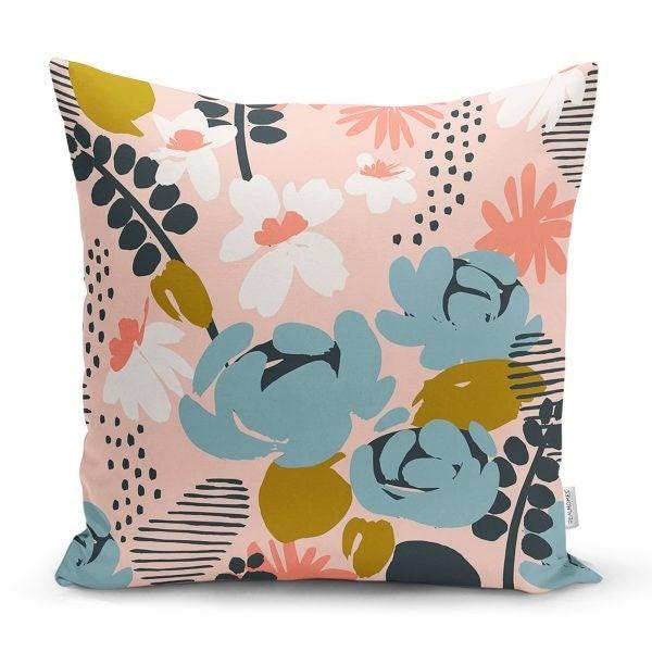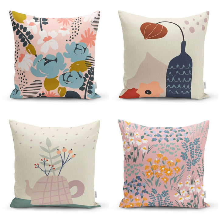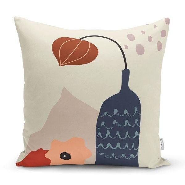 These elegant square decorative throw pillow covers with abstract flower and pot prints;