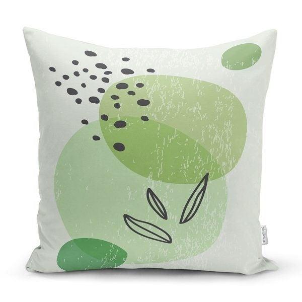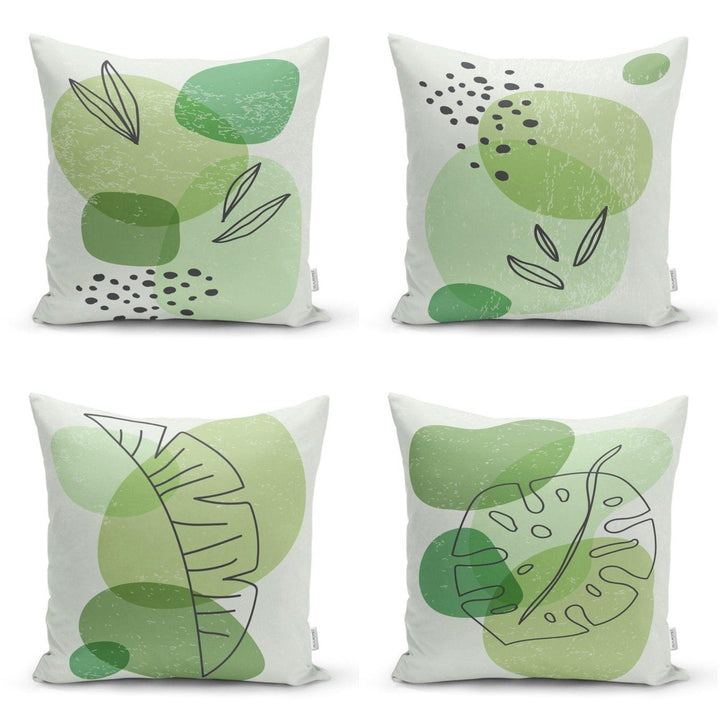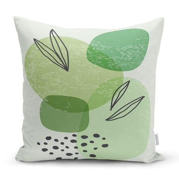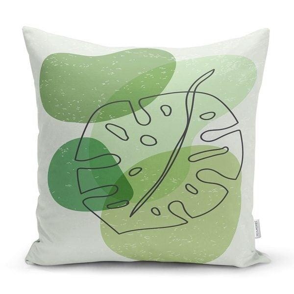 These elegant square decorative throw pillow covers with abstract print green leaves;