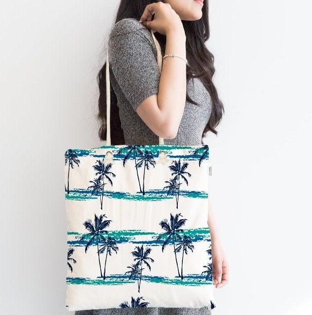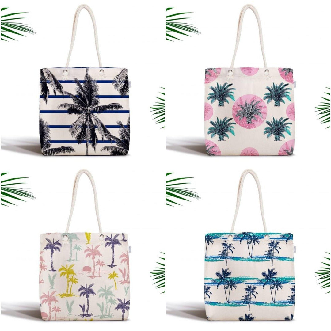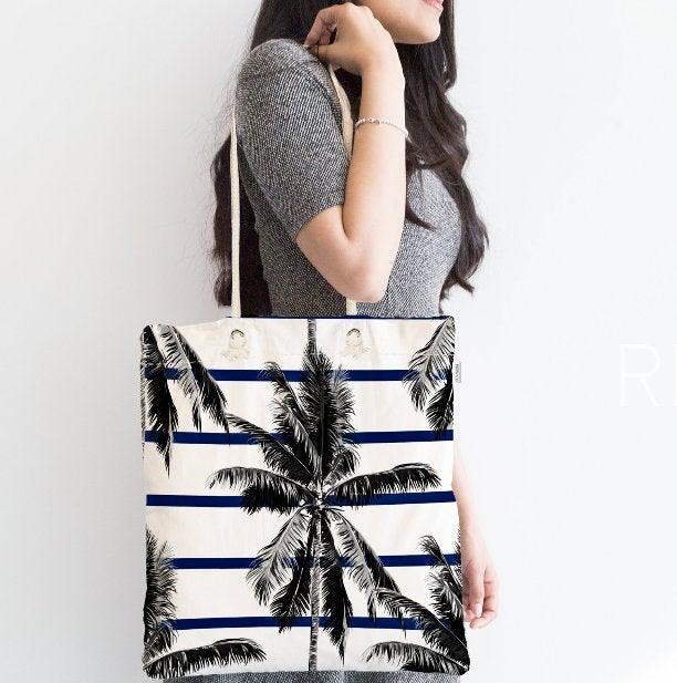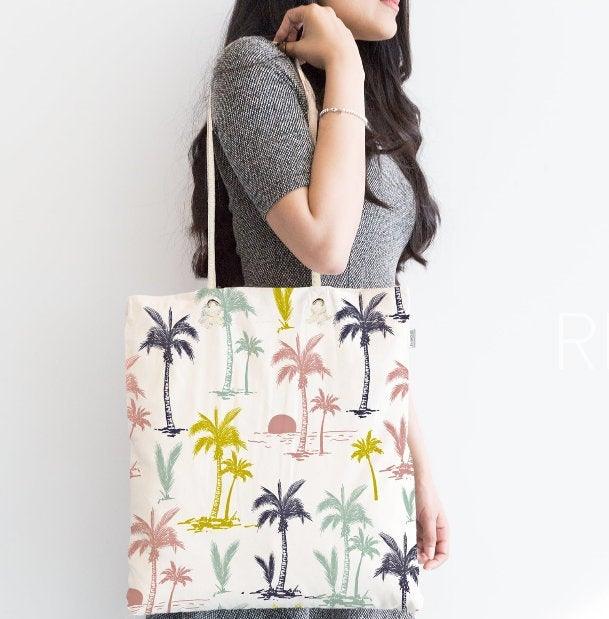 Palm Tree Shoulder Bag|Floral Fabric Handbag with Gray Green Yellow Palm Tree|Floral Beach Tote Bag|Summer Trend Messenger Bag|Gift for Her