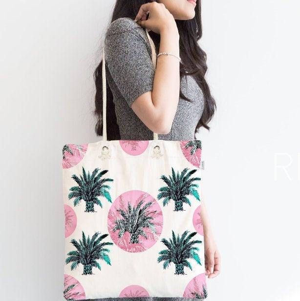 This elegant modern colorful floral digital printed summer trend fabric tote/messenger bag with palm tree;