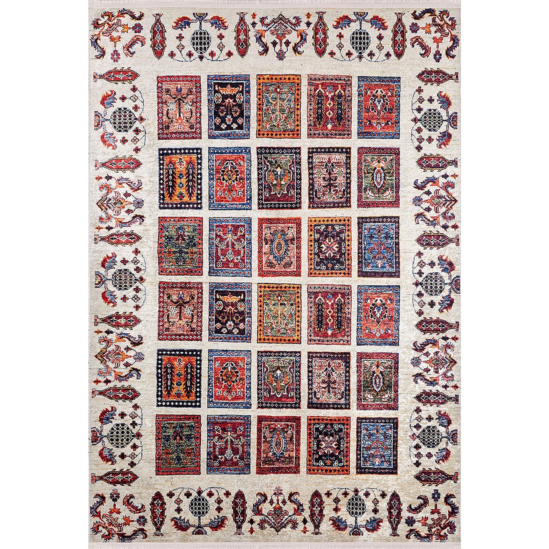 This elegant Machine-Washable floor rug with Ethnic Patchwork design;