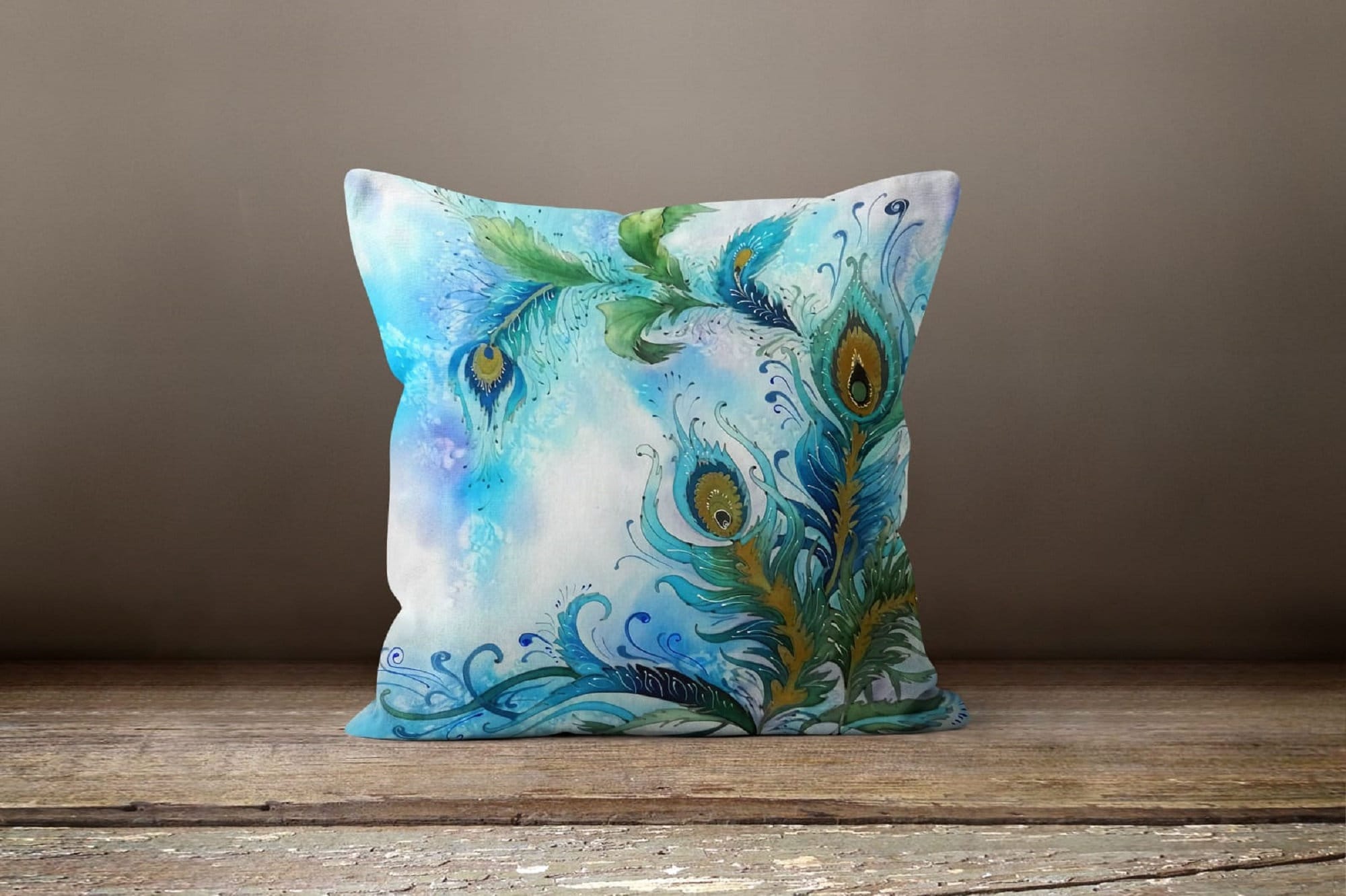 Peacock and Feather Pillow Cover