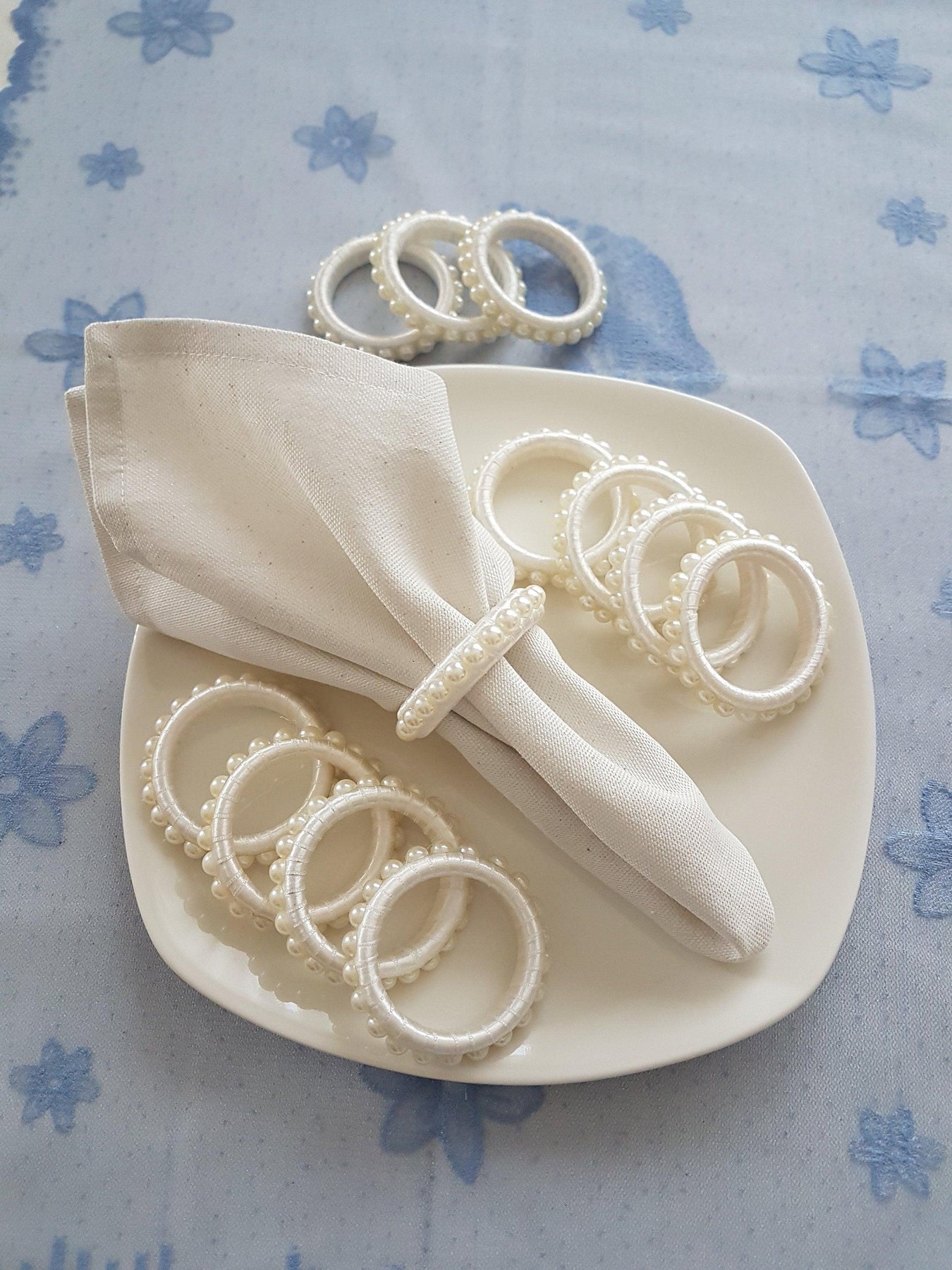 Imagine this "Pearl Napkin Rings" on a dinner table to impress your family or guests! These elegant napkin ring holders are the perfect dining accessory.