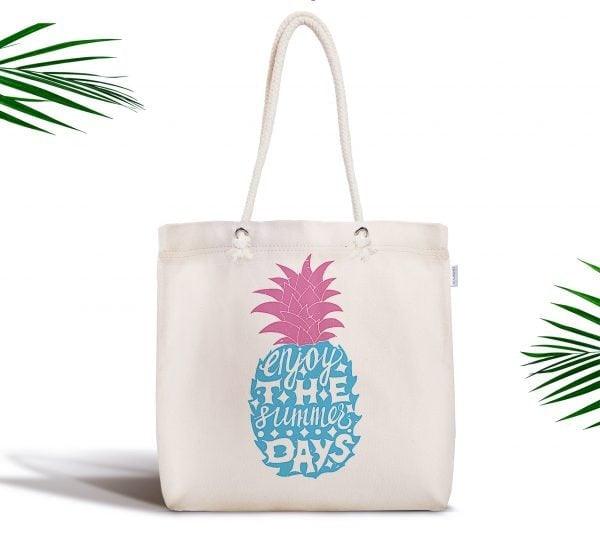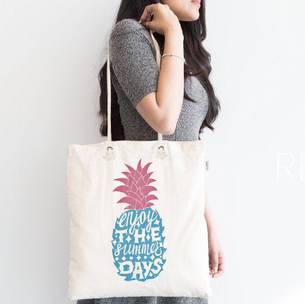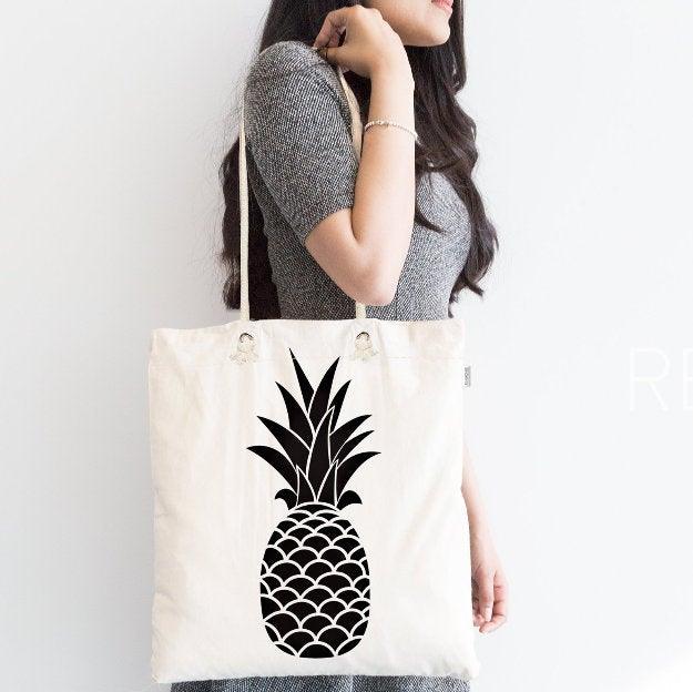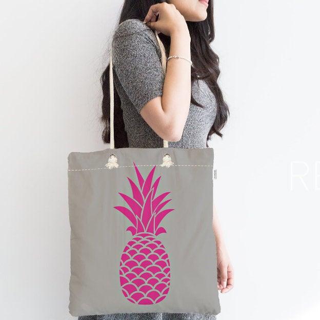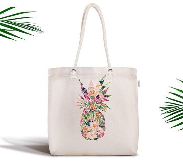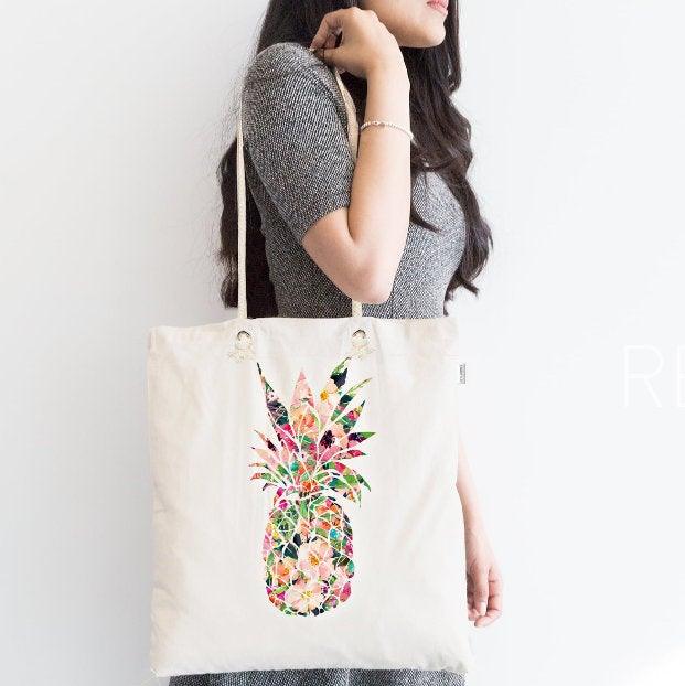 This elegant Pineapple design digital printed summer trend fabric tote/messenger bag;