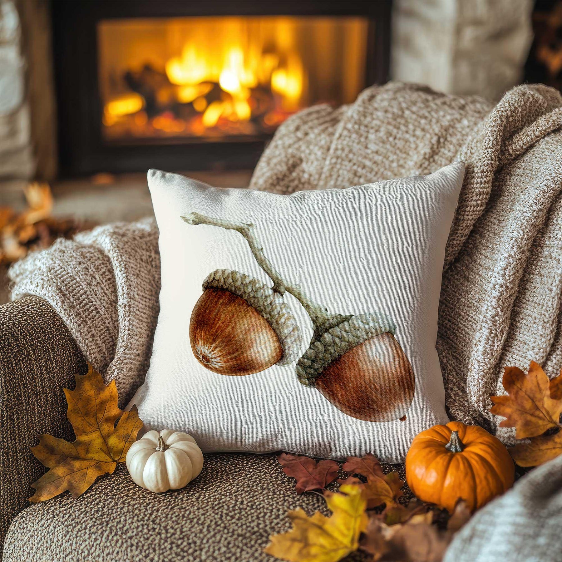 Pinecone and Acorn Print Pillowcase|Rustic Autumn Cushion Case|Fall Trend Pillow Cover|Warm Woodland Accent|Farmhouse Sofa Decor